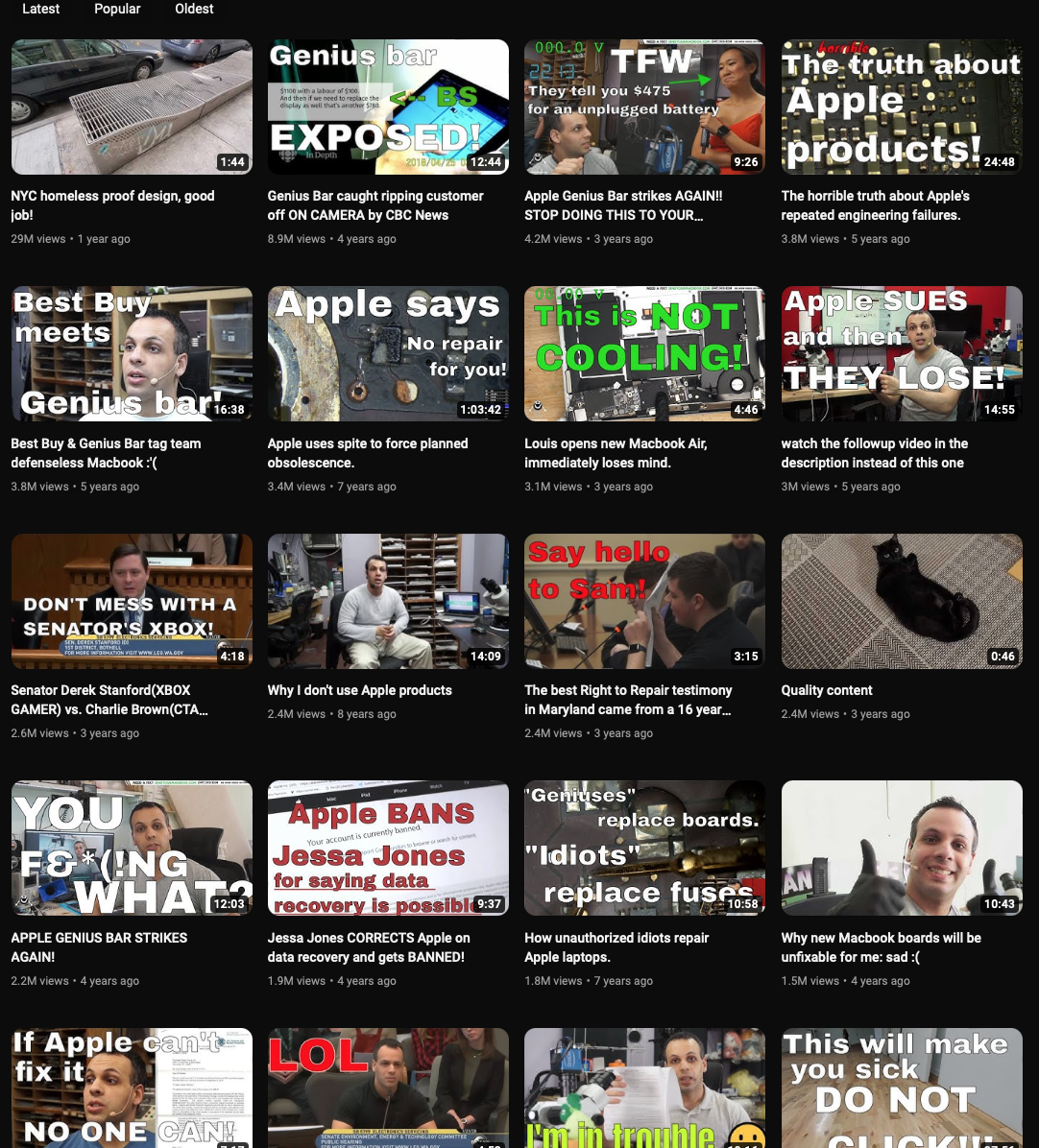 disproportionally focuses on Apple, or that Apple-specific videos are responsible for most of his views and notoriety—which serves as marketing for his business—then you should go look at his YouTube page