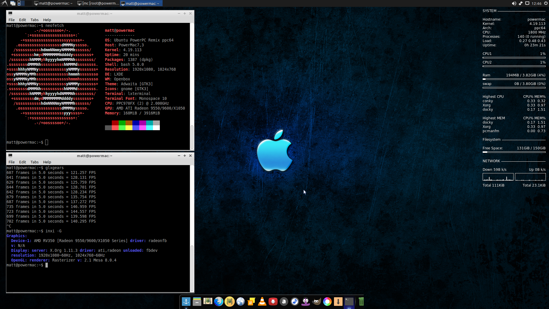 I have a 1.5GHz G4 powerbook - 2005 - 1.5GB and a 1.42GHz Macmini - 1GB. I installed lubuntu-12.04-remix-v3 on Macmini, but I can't do the same with the powerbook. I don't know why, but at installation, I got an error after the user was created (already in the HD installation phase) when the installation program tries to import something from Mozilla Firefox. In fact, even the original lubuntu-12.04 (from the ubuntu site) has the same error. At Macmini, that didn't happen.
