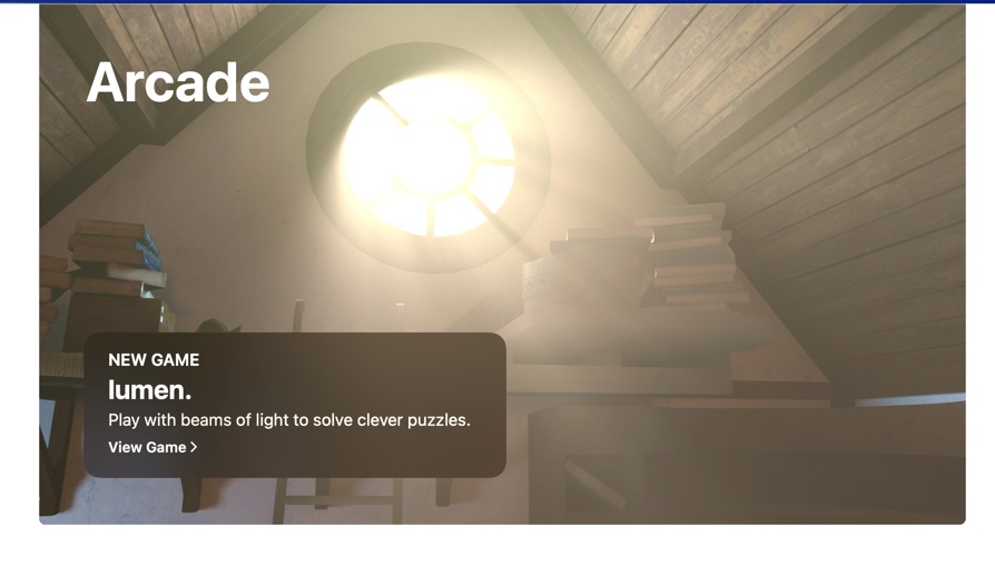 Hi. I have an Apple One subscription and Lumen was released for Apple Arcade today.