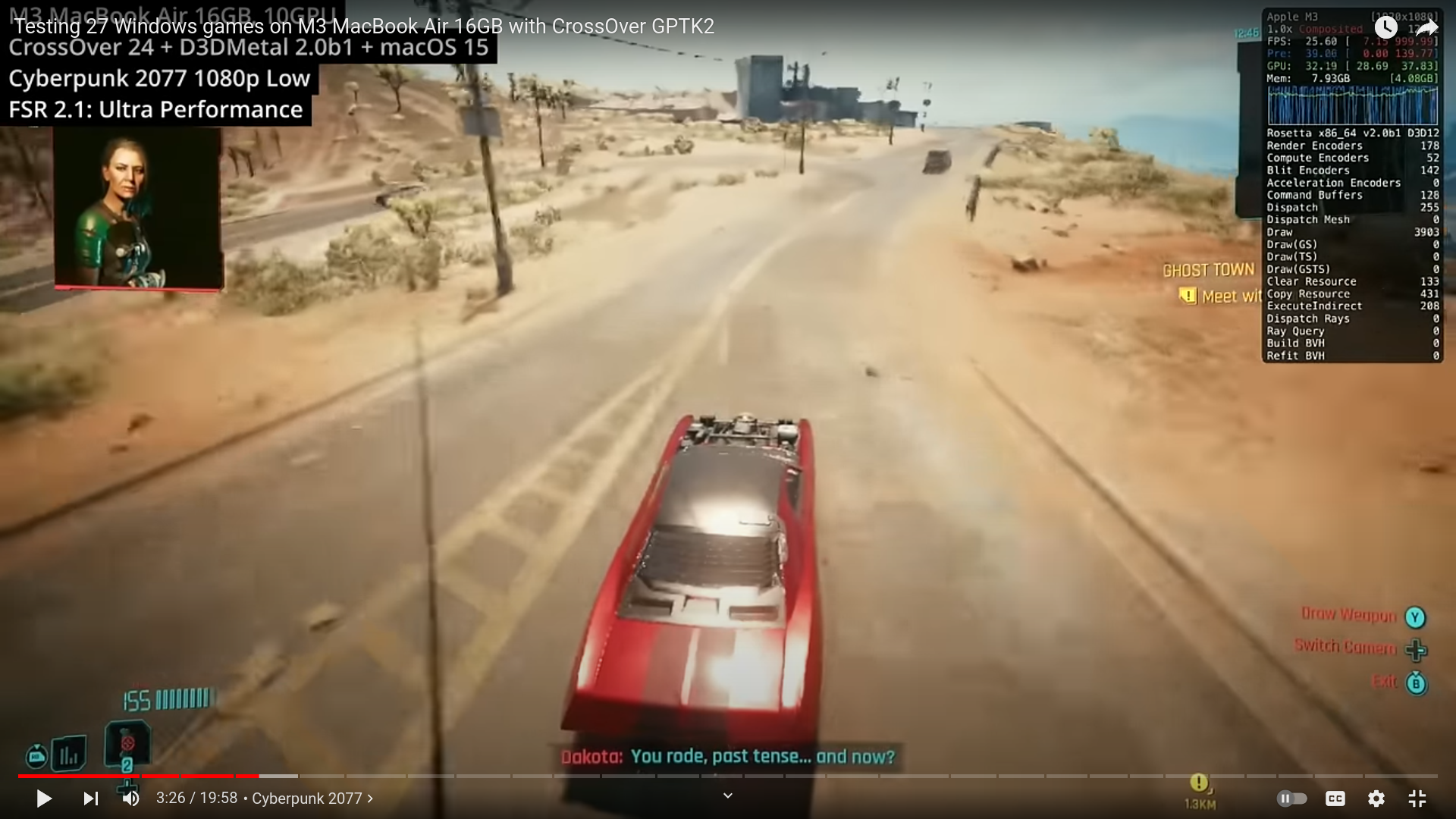 Indeed! It doesn’t take a genius to realize that a Windows game in Crossover runs through three translation layers, just as Andrew Tsai says himself in the video. You have DirextX to D3DMetal via Wine/Crossover/GPTK, Windows to macOS and X86 to ARM64 via Rosetta. Anybody with basic understanding of computer science should know that a performance comparison between a native app and a translated app through multiple compatibility layers is meaningless and misleading.