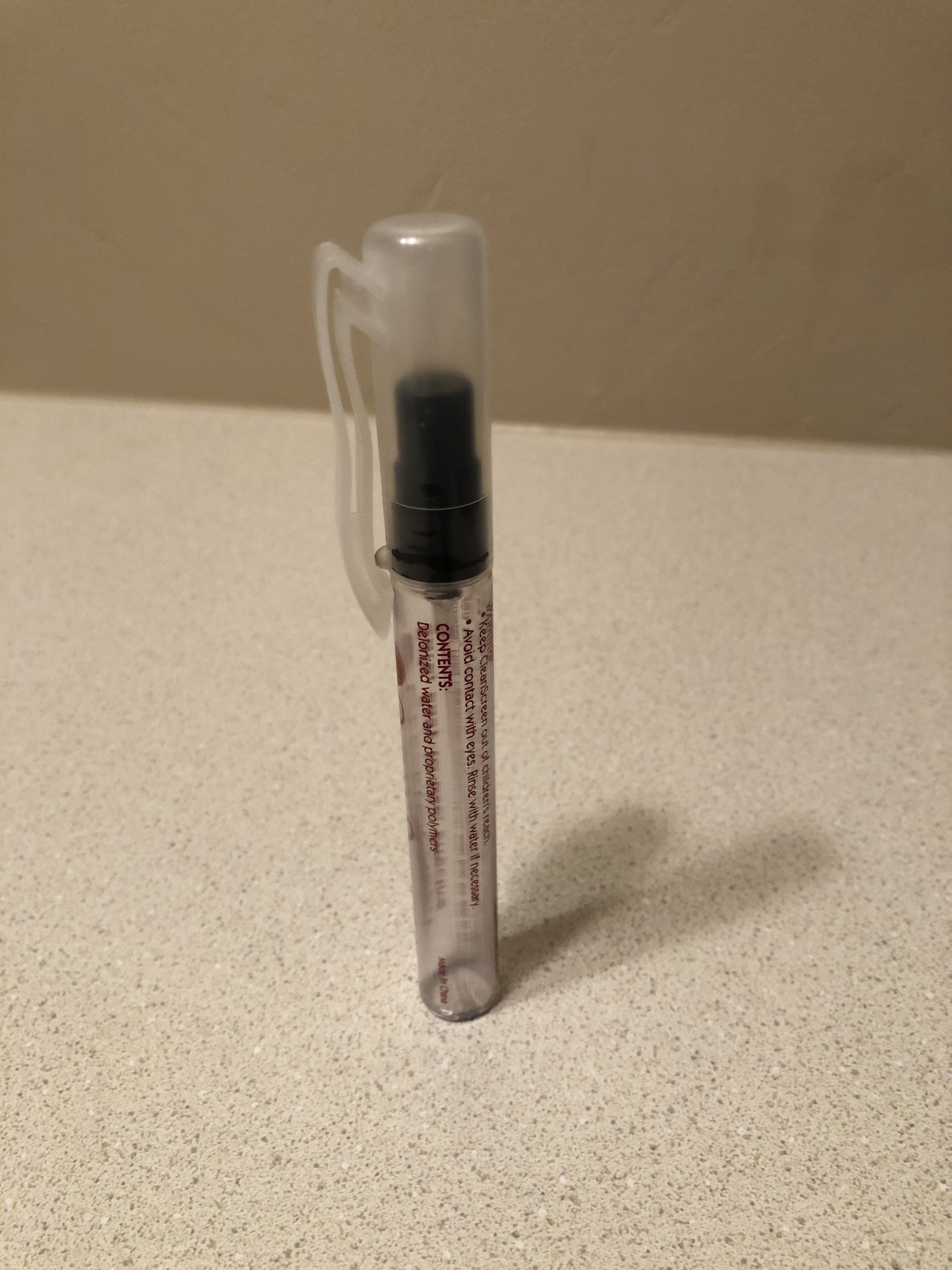 As for that little spritzer bottles, you can find those near the Optometry sections at brick-and-mortar retail stores. They’re usually filled with some cheap lens cleaner, I dump/clean them and put the Lysol in place. Brilliant Little idea that’s portable And compact.