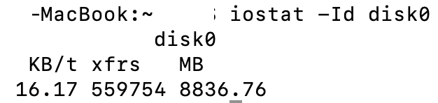 Or your iostat command is showing both reads and writes? Which is very similar to 84.77+42.40=127 GB.My M1 macbook pro activity shows that I have written 42gb to my disk since last reboot but when i use "iostat -Id disk0" code in terminal it shows 130gb written this means two things:-