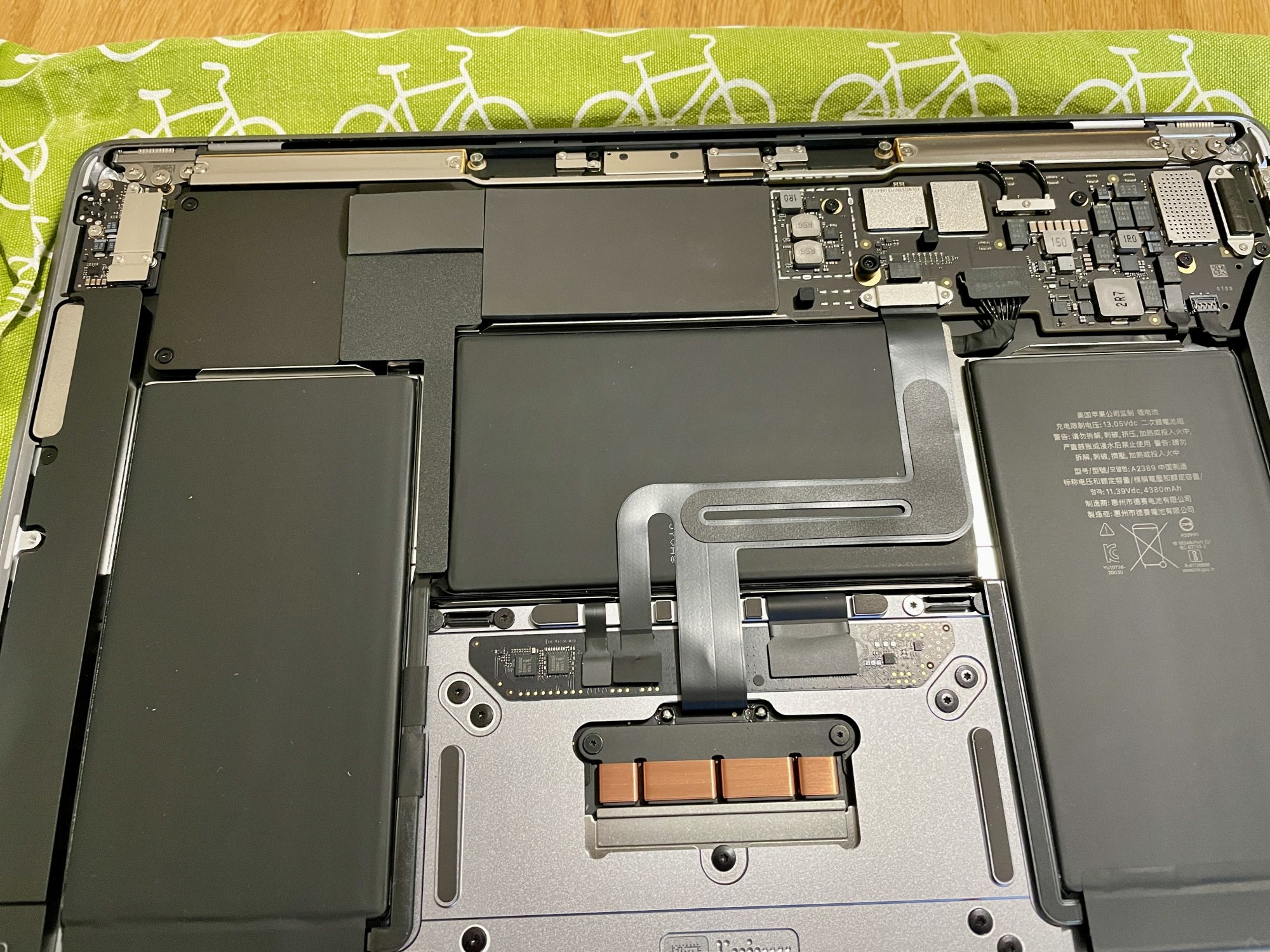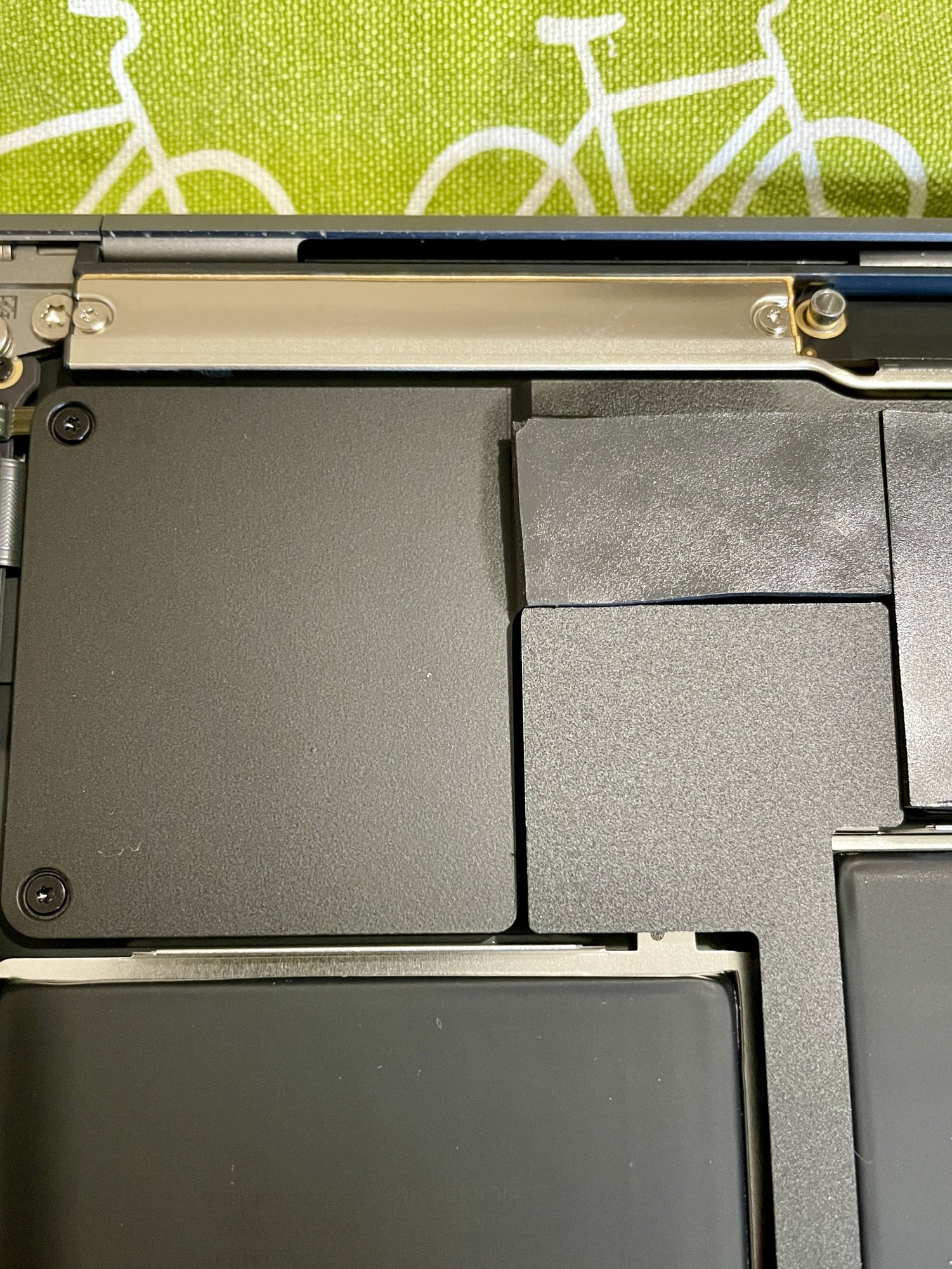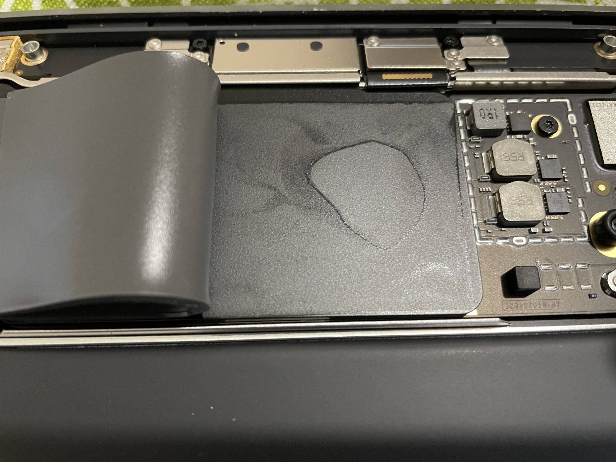 For the reasons I gave early on, I don't want to make a habit of opening the case. However, to further scientific endeavour, I have made an exception. Here are two photos - with bottom case removed and of the bottom case itself - after 9 months with the thermal pad mod. For a moment I thought it odd that there was no dust inside - but then there is no fan to draw it in!