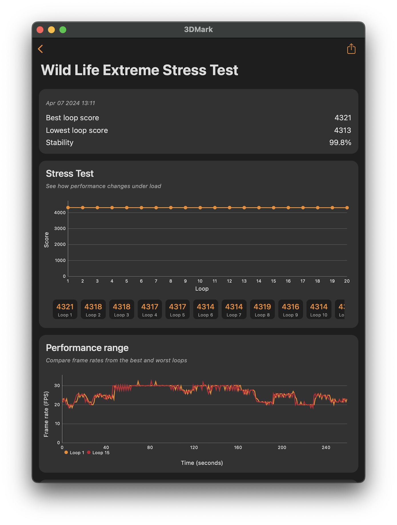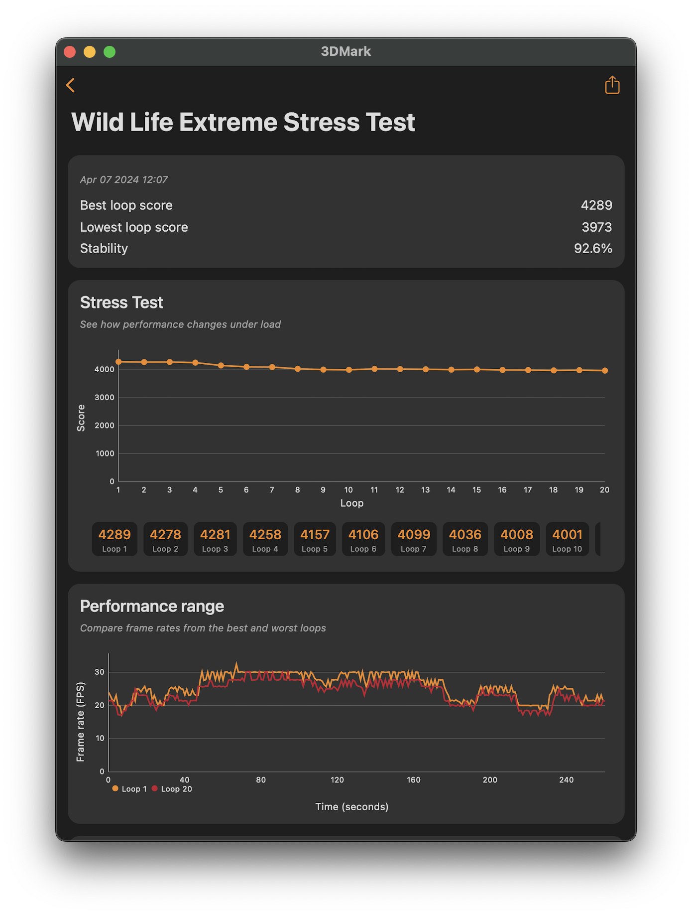 | 3DMark Wildlife Extreme Stress Test stability | 92.6% stability | 99.8% stability |