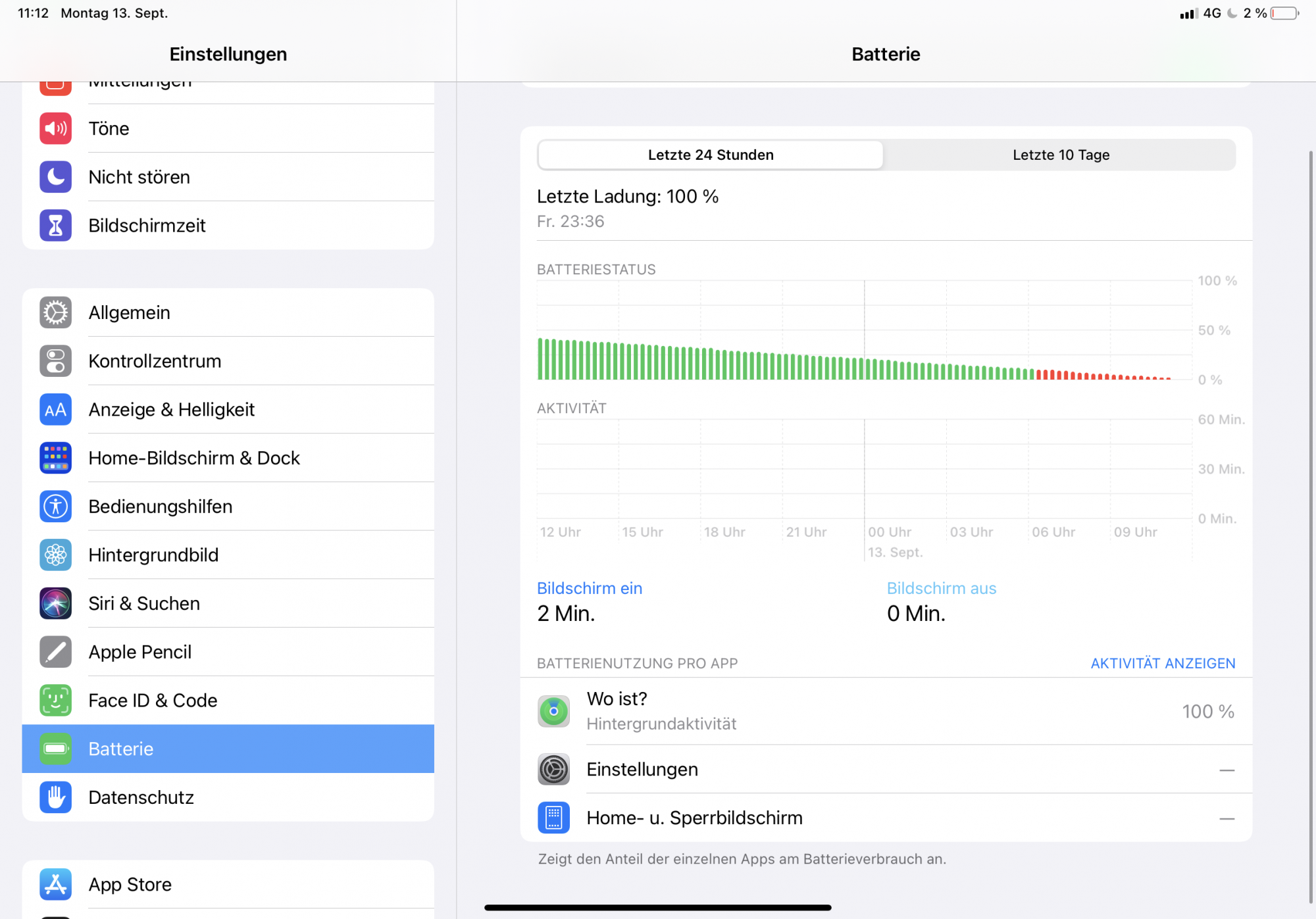 I am noticing that my M1 iPad Pro 11" is draining fast. The battery stats are showing the Find My app is using 73% but only 1 minute of screen time. I hardly use the iPad Pro so going from 100% to 60% in a couple of days seems odd to me. Also, I do keep my Apple Pencil attached at all times. oh, the cover is just the Apple case with no keyboard. Any thoughts or help would be appreciated.