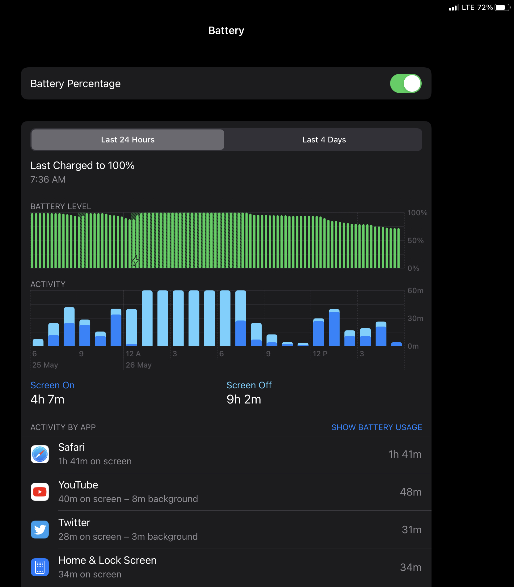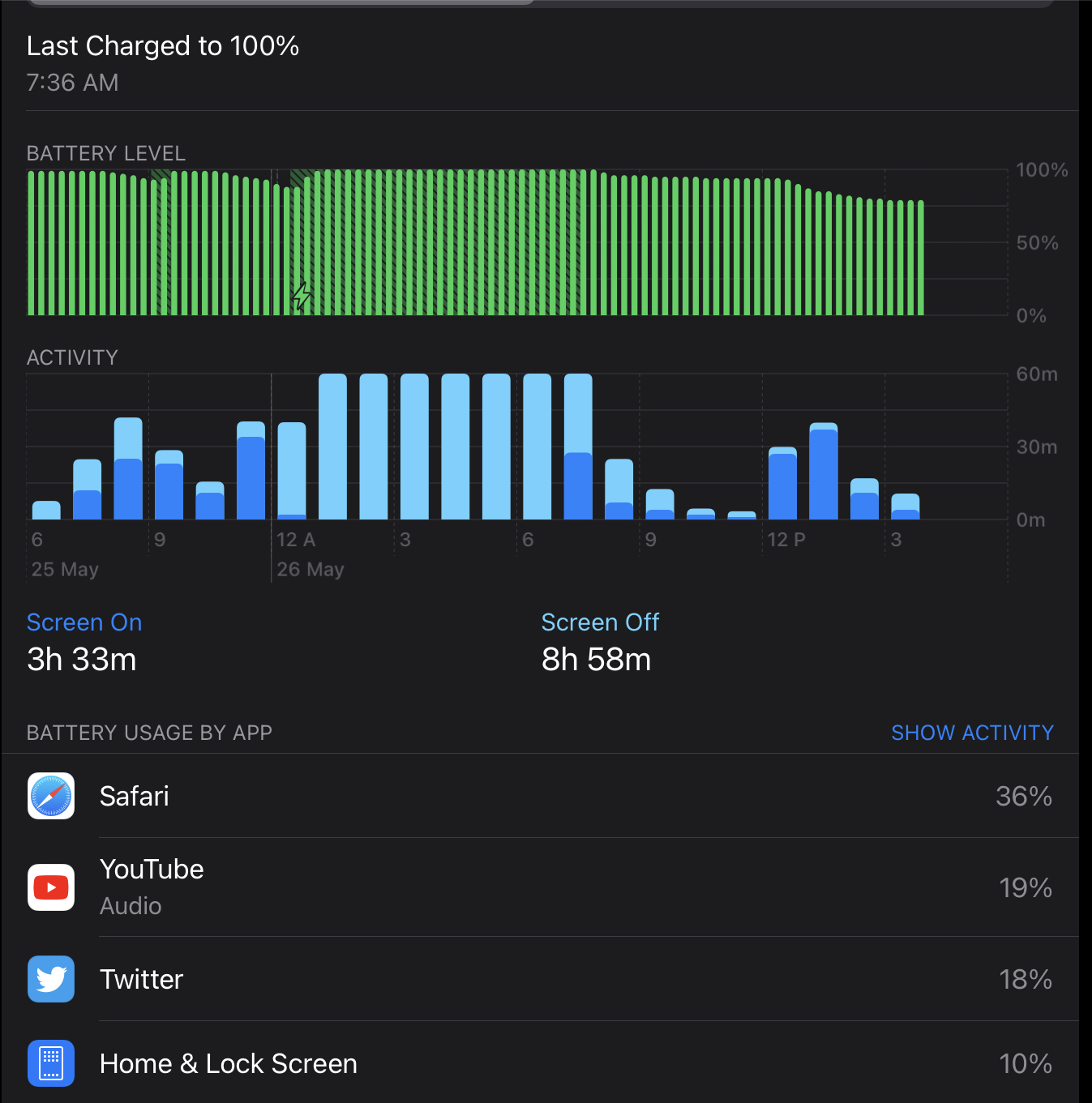 Only time it was at 25% was the 3+ hours in Infuse watching Avengers: Endgame in 4K HDR.