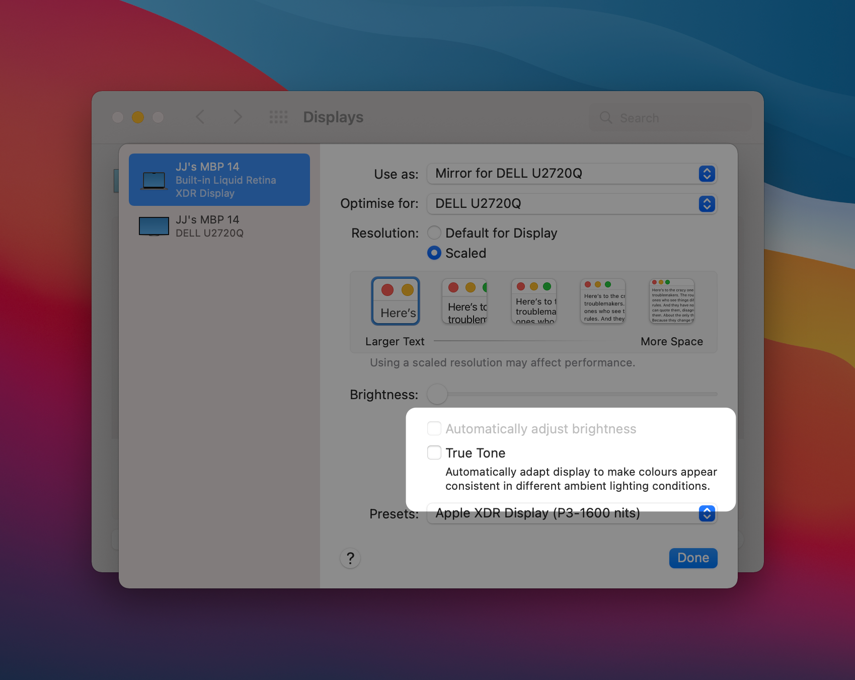 tldr; I may have found the cause to this issue, and found a way to fix it. It involves turning off the internal display 'True Tone' and/or 'Automatically adjust brightness'.