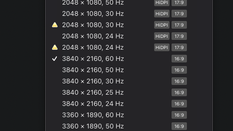 The M1 is fast enough to handle any scaled resolution, not just 2x modes. I run 4K at 'looks like 3008x1692' mode (or something like that) and there's no speed impact.I think you need to select lower than your native resolution for HiDPI mode, like 4K monitor showing content like 1920x1080 (2x) or 2560x1440 (1.5x). Just like how it works in Apple build in monitors. Anyway I understood that others than 2x and native scaling caused quite a bit GPU load, so practically we need 5K monitor for 2560x1440 (2x) "looks like" mode.
