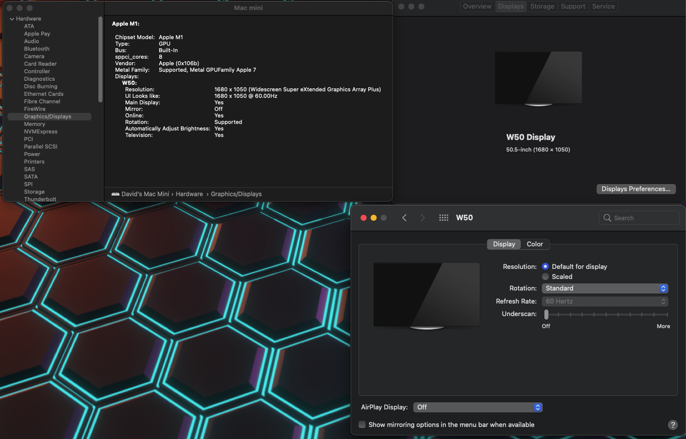 I use a 50" 4k UHD TV as the display for my mac mini. I had my late-2014 mac mini connected to it which displayed at 1080p 60hz as the default, but I could set it to 3840x2160 with no difference in scaling and looked beautiful (granted it only ran at 30hz with a bit of lag, but no problems with UI resizing). I just received my new M1 mac mini today, and ran into a hugely annoying issue. For some reason the new mac reads the display default as 1680x1050 60hz, which looks horrendously bad, and if I change it to the 4k resolution at 60hz everything looks nice and sharp but all windows/icons are resized to be extremely small. I really don't want to have to go with the 1080 again, it's not bad but I was really looking forward to using 4k here. I am using the same HDMI cable I was using with the 2014 mac mini, plugged into the same port on my TV. Does anyone know of a potential fix for this issue? Thanks!