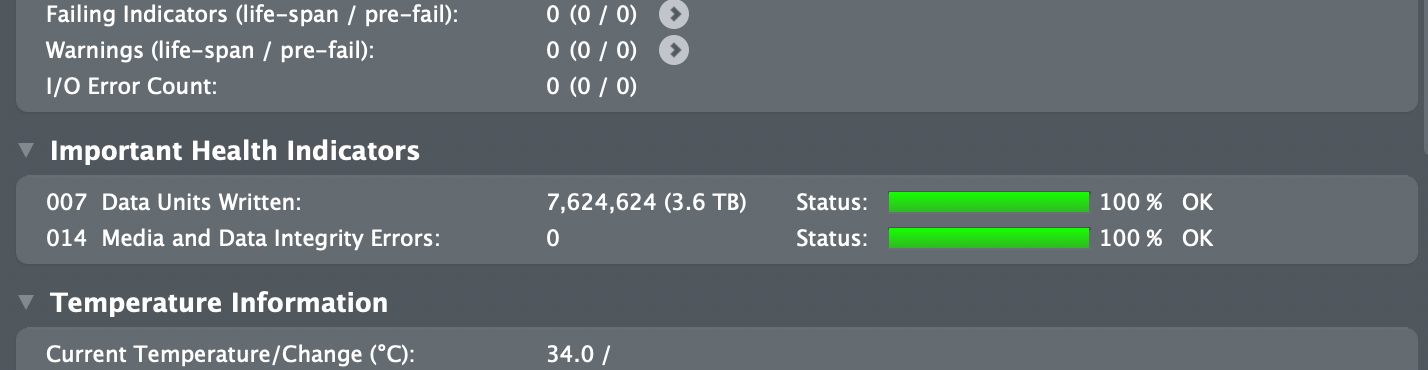 I've been using DriveDX since July 2020. I prefer the convenience when monitoring multiple internal/external drives. The GUI is much easier to deal with than using Terminal commands. Detailed explanations of the various health parameters are directly accessible from the main app window.How can I check the SSD total writes on my device?