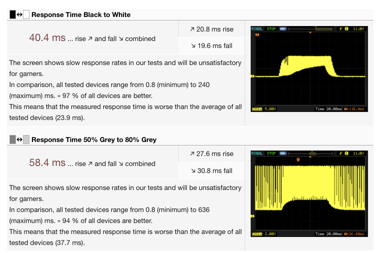 1600 nits brightness, better color accuracy, more dimming zones and heck, even higher pixels per inch still make a display inferior because... response time.