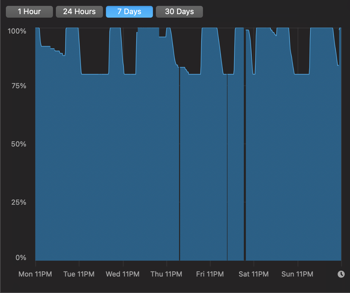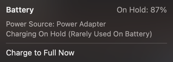 By letting it go down to 80%, it's fewer charge cycles, not more, which keeping it "topped off" would be. That said, Looking at the battery tab, it looks like it isn't going from 80-100%, but just staying at 80%. That's a bit more concerning and why I was looking around. My guess is I'm not seeing the top up to 100% because it's probably just a few minutes here and there.