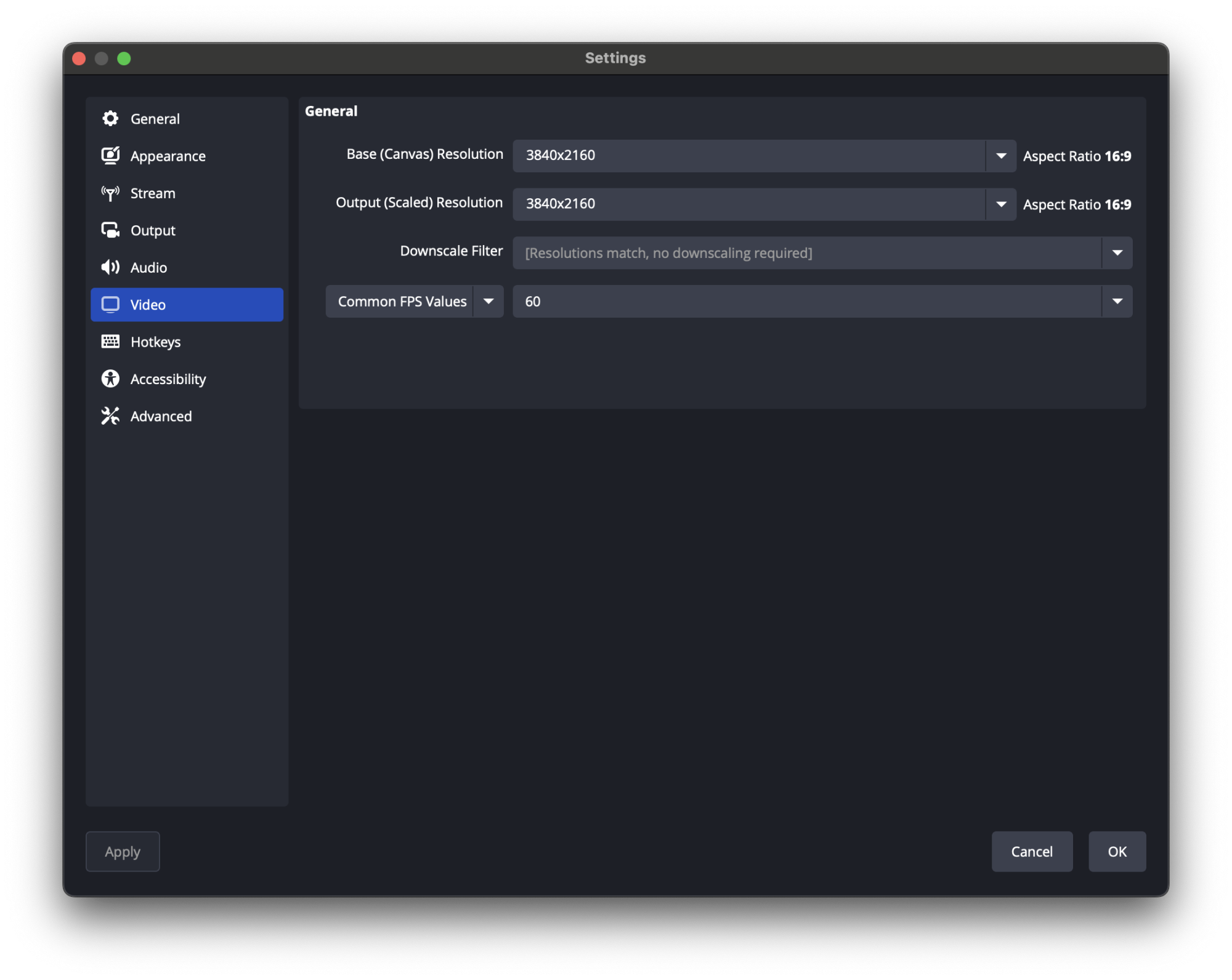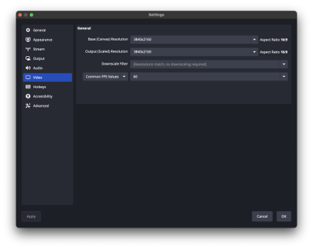 Resolution (the number of pixels used along each dimension) is similarly important to identify early. Earlier games had smaller resolutions (for example, 320 x 240), modern consoles often render in "1080p" or "full HD" (1920 x 1080), and cutting-edge systems sometimes render in "4K" (3840 x 2160). To avoid reducing recorded quality or wasting data, and to get "pixel-perfect" recordings without image distortion, make sure your OBS settings match your console resolution, or your gameplay window's size.