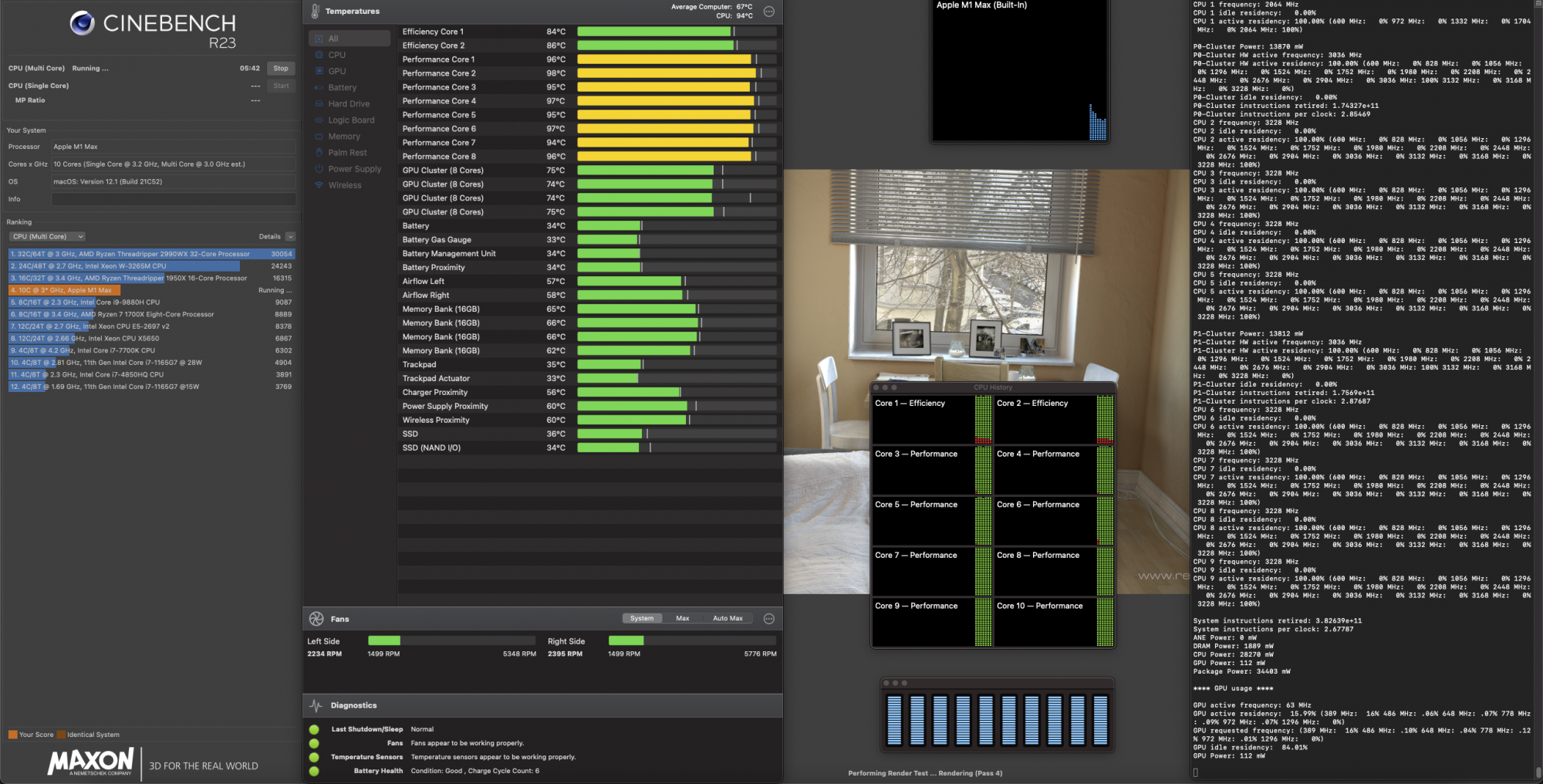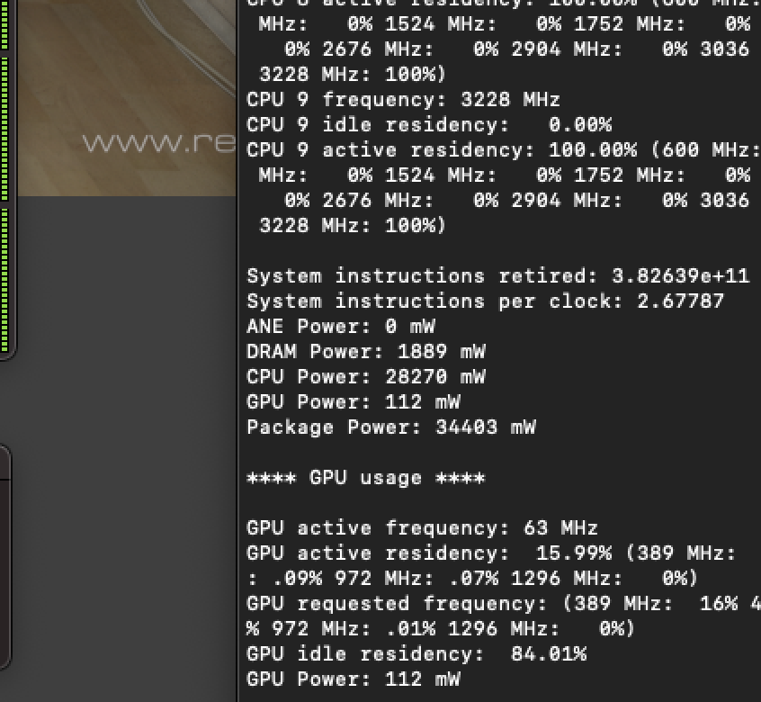 I ran Cinebench R23 multi core test to see the power consumption just for M1 Max' CPU and I got 28.27 Watt. All cores were being used for sure. 30W is the maximum power consumption for M1 Max, right? I wonder if anyone got power consumption higher than 30W.
