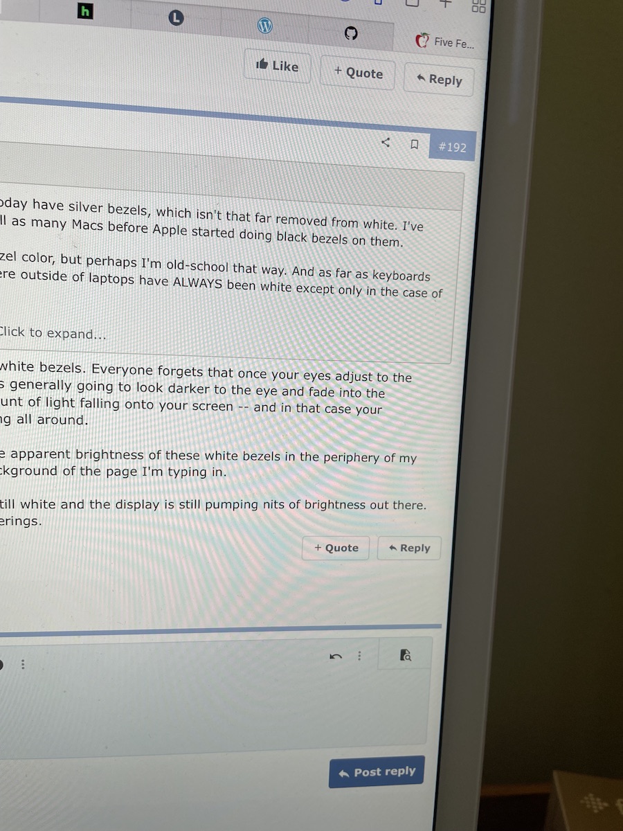 That black polycarbonite MacBook was nice, though. One of my favorite Mac laptops, for its time.Good point, a skin could be an option. Having used iMacs from the early generations onwards over the G4 lamp and the white G5 models and intel models I got used to the bezel colour rather quickly. I found black glossy displays and display borders way more irritating but that’s probably just my personal preference.