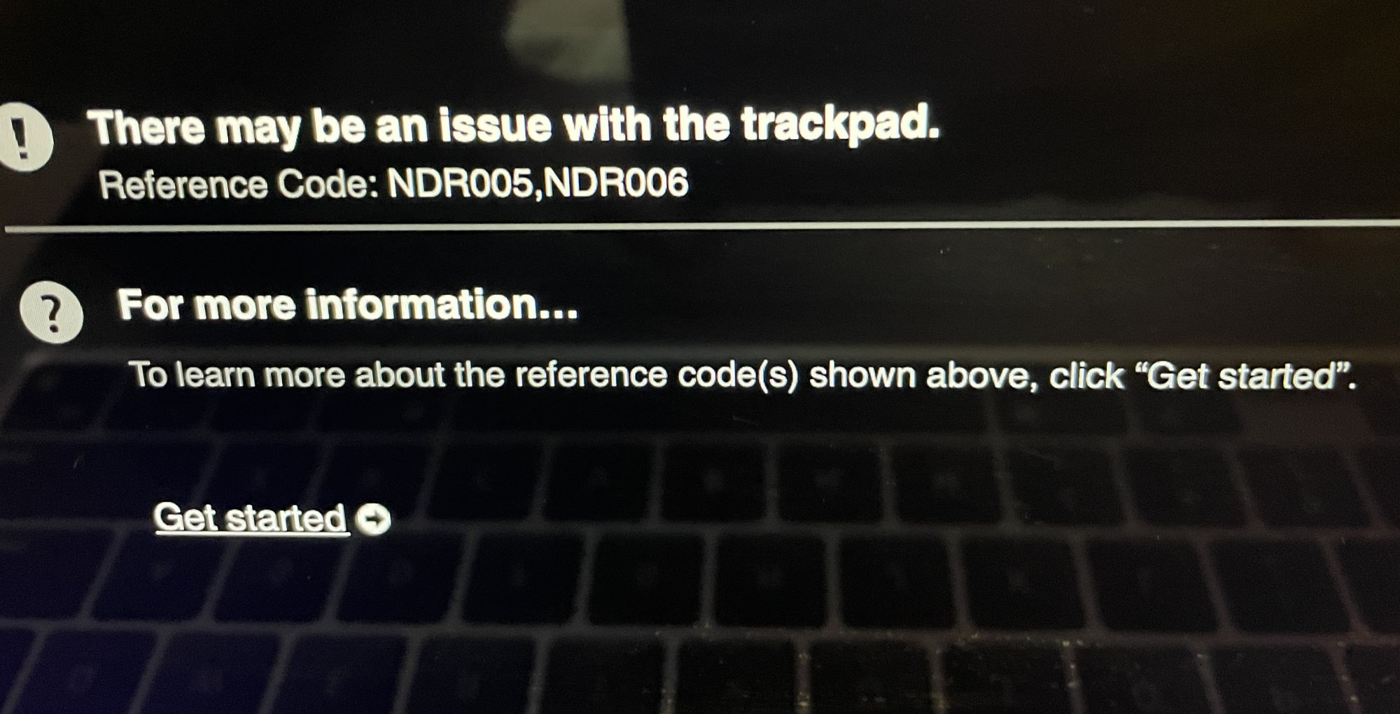 Has anyone else run into this diagnostics code / trackpad issue, and what happened?