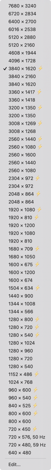 How is anyone getting 3200x1350? I don't have this available. Or has someone inserted it and I've missed this development! It is closer to the goal!Interestingly, I just noticed another quirk: If you choose a "low resolution" mode that is listed in the display's VESA table, macOS will output that resolution directly. e.g. if you choose 2560x1080 (low resolution), macOS will output 2560x1080. But if you choose 3200x1350 (low resolution), macOS will upscale like you say and output 5120x2160.