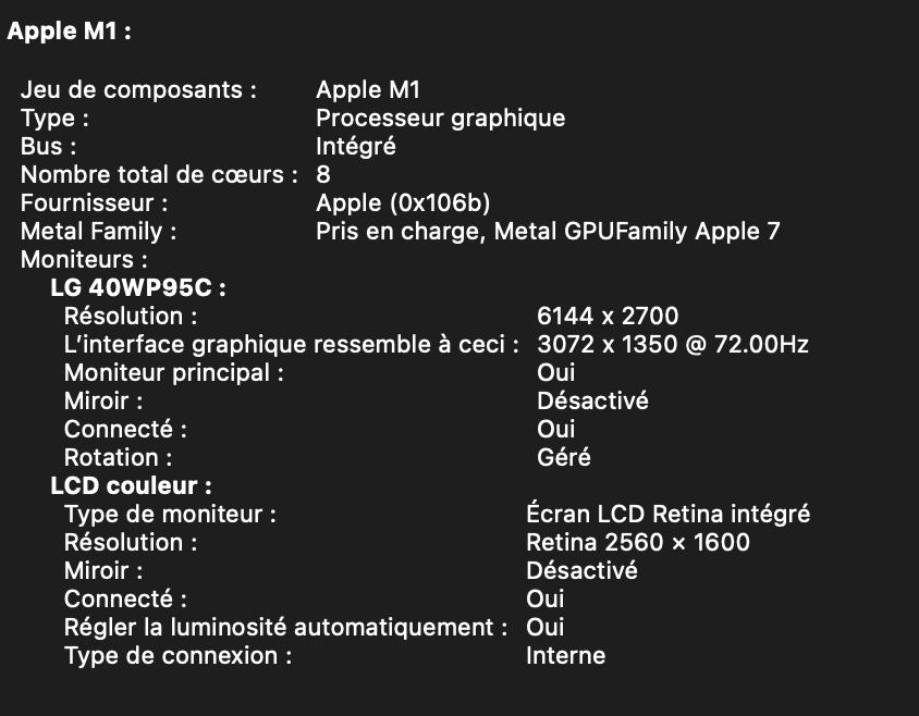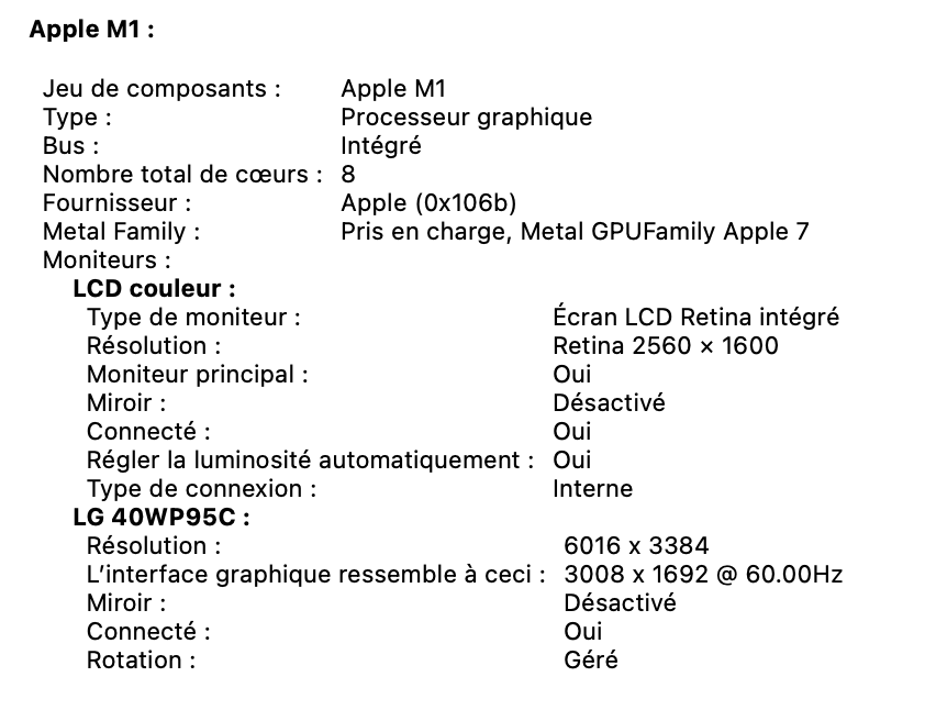 I bought this week a new LG40WP95C , to replace my old mate iMac5K 2014, and wanted to connect on my light MacBook Air M1 (2020). Like everyone around, I was struggling with 5k2k support on such Macbook, and after a couple of time reading the posts, and did myself a bit a research and it turns out that things are more simple to understand that we think... there is no magic / obscure resolution choices ... it is just math.