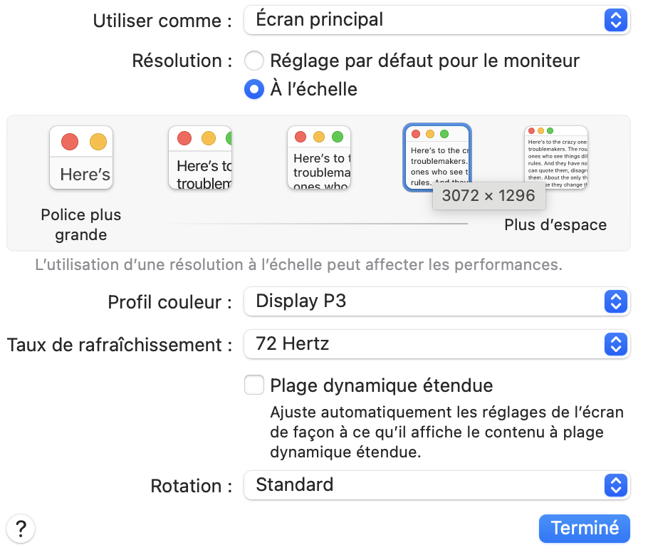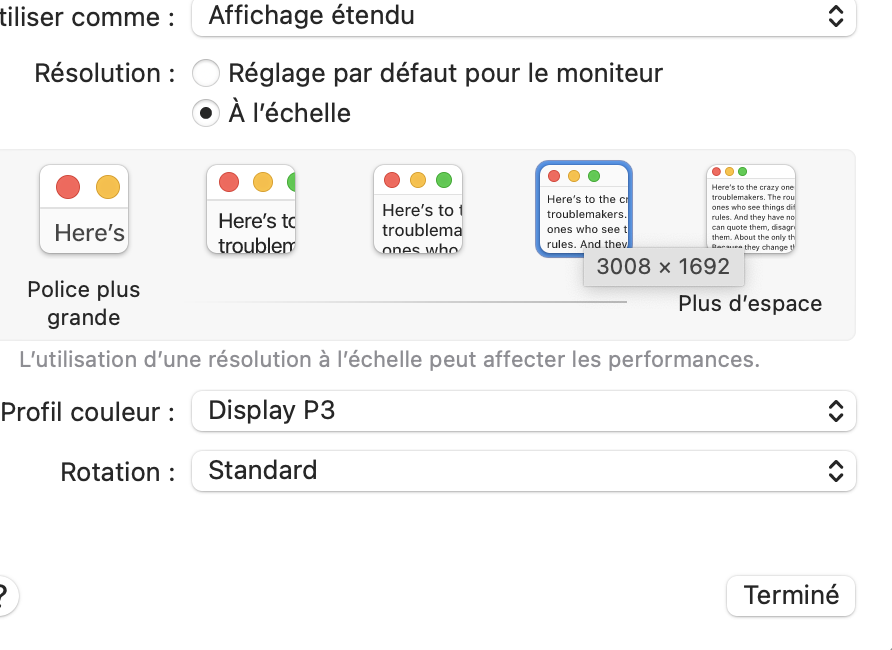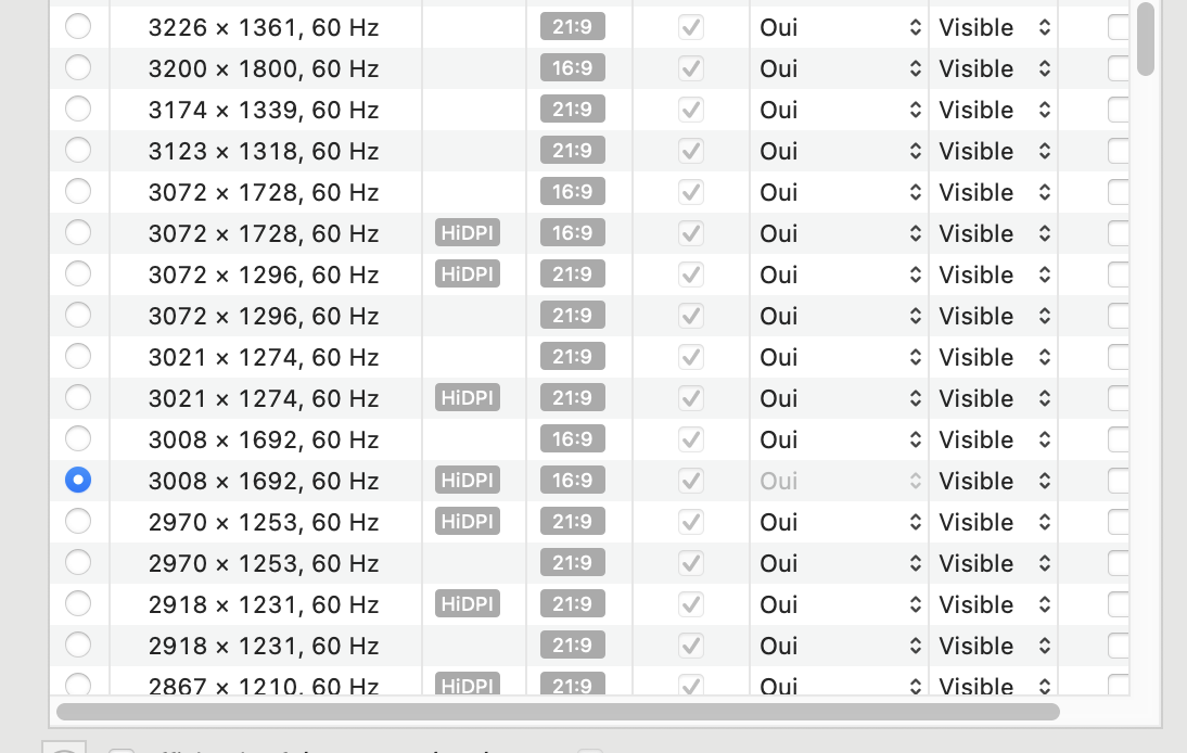 Then comes the confusions , depending of your Macbook, you will see additional scaling resolutions ( I won't talk about "low resolution" choices , just the HIDPI ):