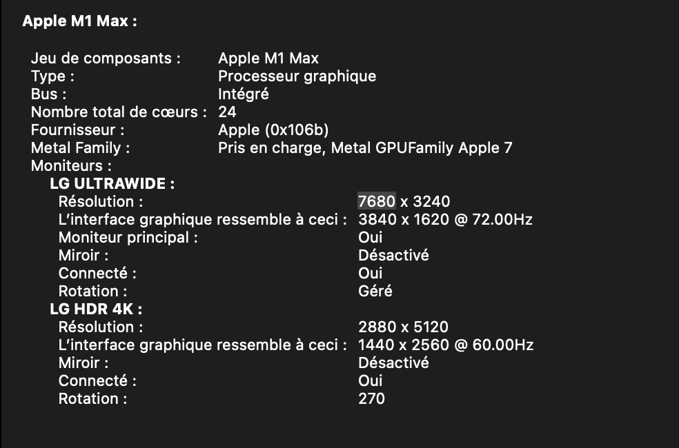 - M1 Max ( like MacBook Pro 14 ) support 3024 x 1964 native pixels on internal display and