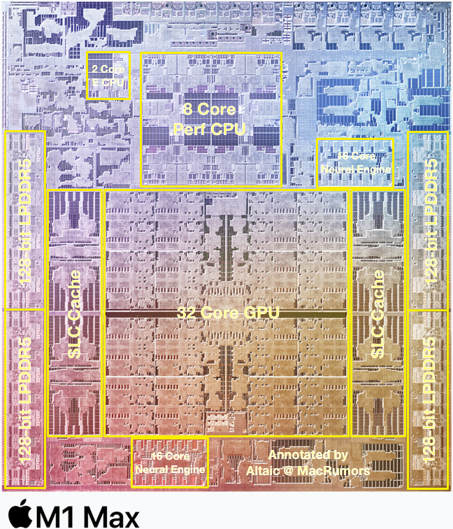 Also, that GPU...! It's like 1/3 of the die! The M1 Max is more like a GPU with some other stuff added in than a CPU with a GPU tacked on.