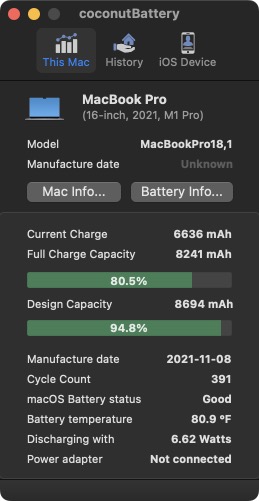 I'm curious how other M1 Pro & M1 Pro Max owners are doing in the battery health department after around 2 years of ownership.