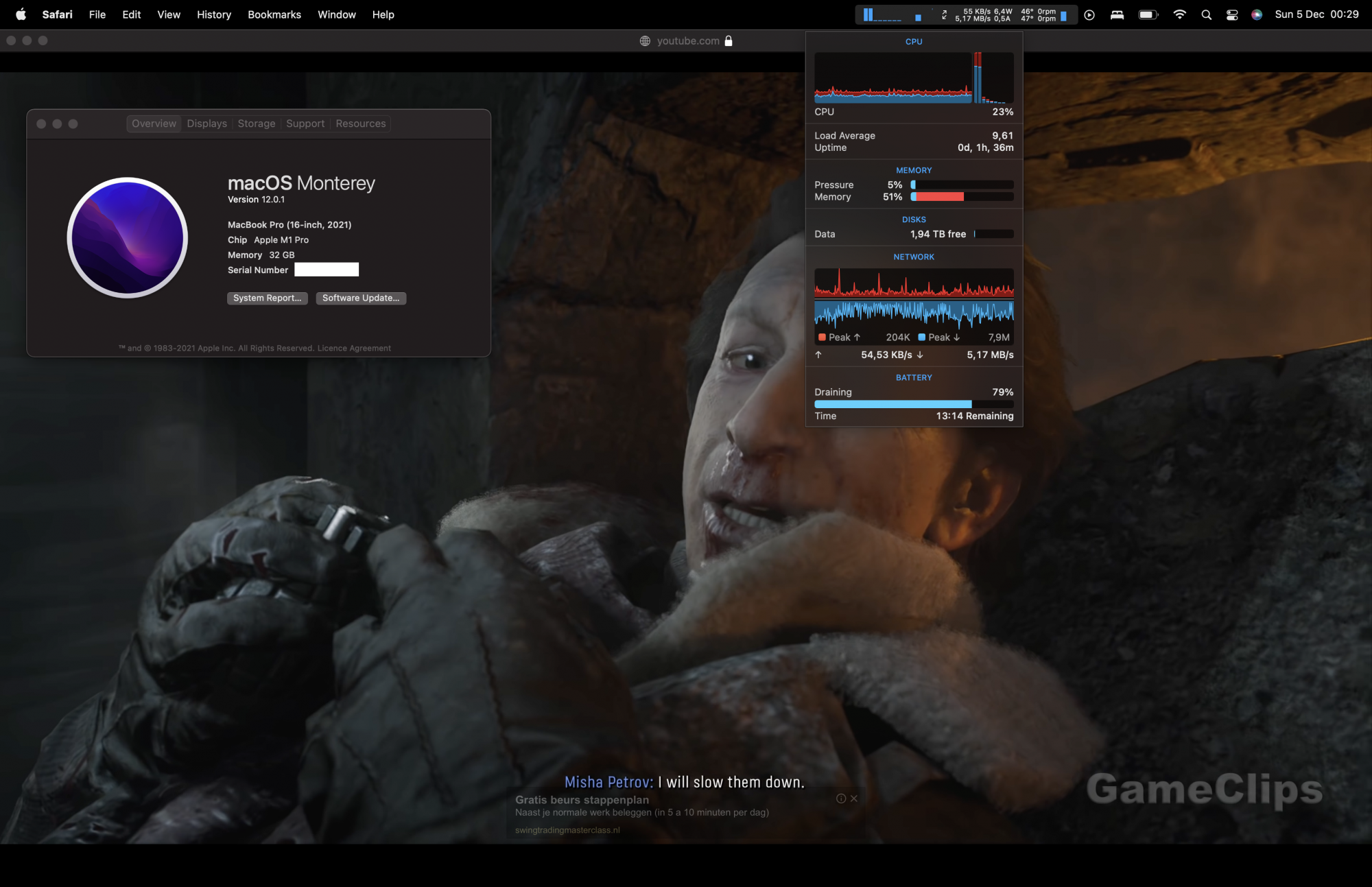 Light use - Affinity Publisher, 11 tabs in Safari, Ulysses.