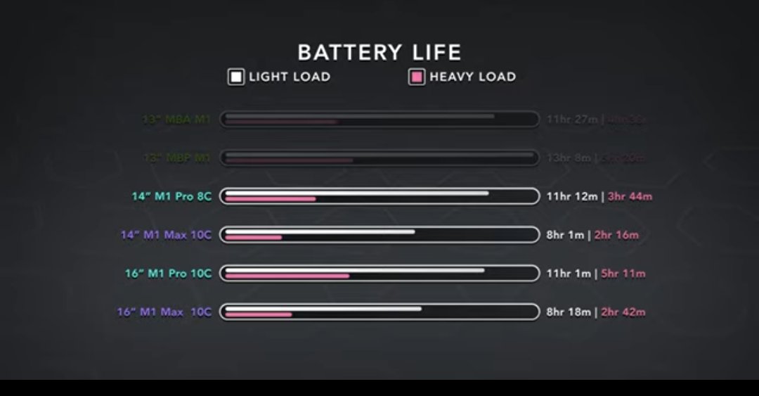 One more battery lifetime comparison (source). It adds more questions that answers though. Dave says he ran the test several times, still the 14" and 16" demonstrate equal time on light load (whatever that means specifically).View attachment 1909872