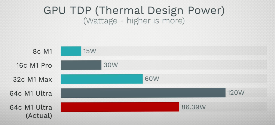 Up to Max was not to bad but I think this show well how horrible the M1 Ultra is.It wasn't just the ultra, the M1Max had pretty poor GPU scaling as well. I think there was something about the whole M1 generation that didn't scale well. It wasn't as noticeable at the smaller GPU core counts (like the M1 and M1Pro) but as you started to add more and more GPU cores you could see the scaling fall off.