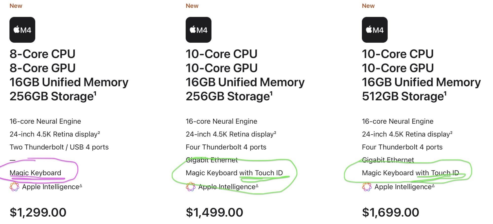 Damn. You are right.No, the entry-level iMac has a Magic Keyboard without Touch ID. Look at the M4 iMac comparison chart from the Apple Store. Do you see the difference?