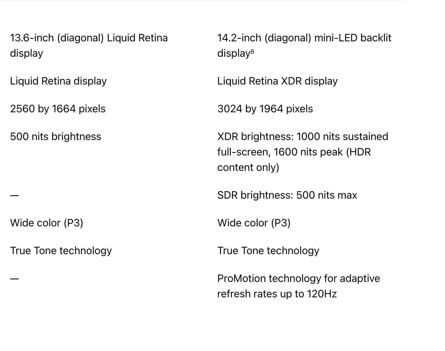 And the weight factor isn't a thing since the MBP 14" is only .7 ounces more than the MBA M2. Difference is the battery life, form factor, screen, ports, speakers, chip.