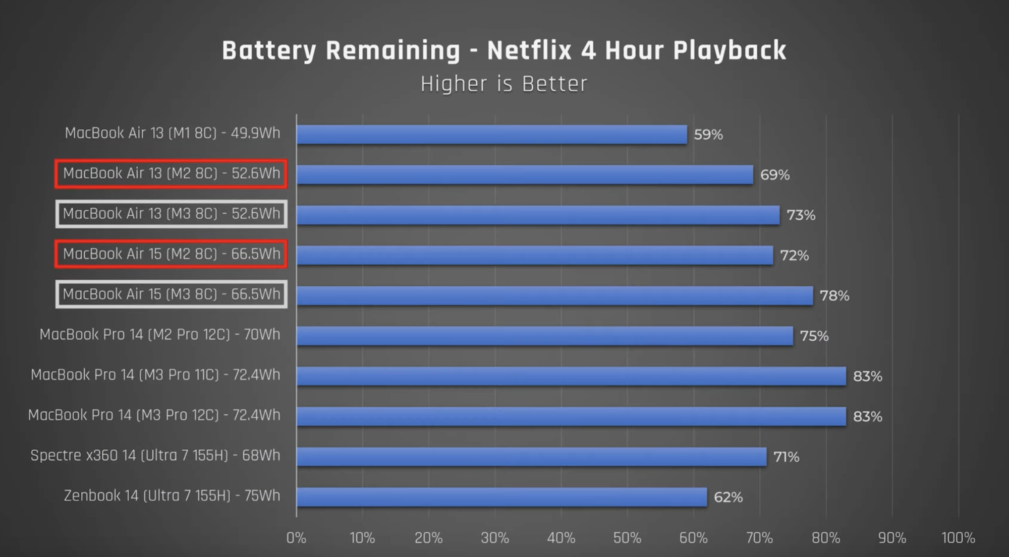 Re Battery life: Take a look at the image attached, JustJosh youtube channel from the M3 Macbook air review.