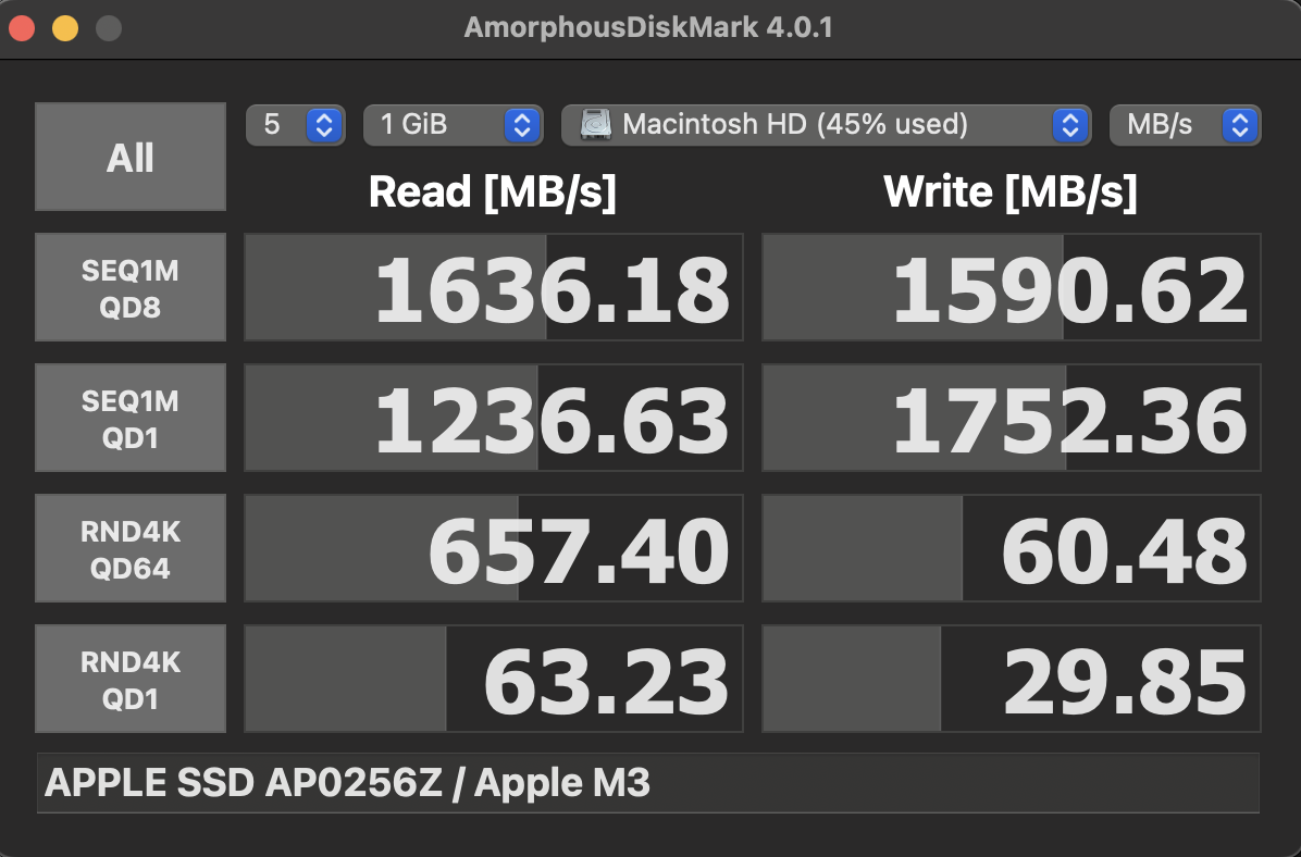 My MacBook Pro M1 512 gehts read and write about 5000.