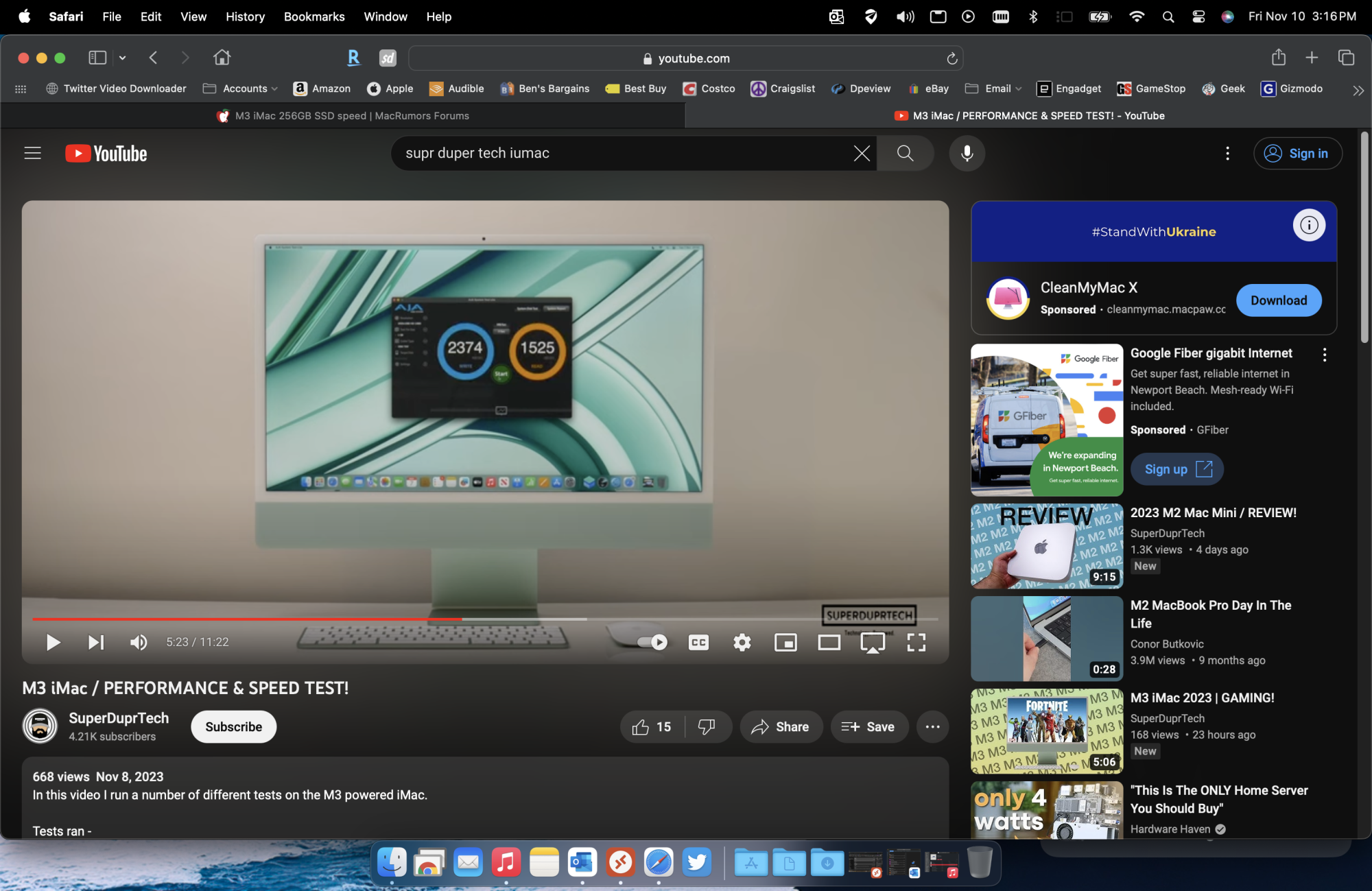 Here is the test of my iMac M3 16GB Ram, 1TB SSD, updated in Sonoma.