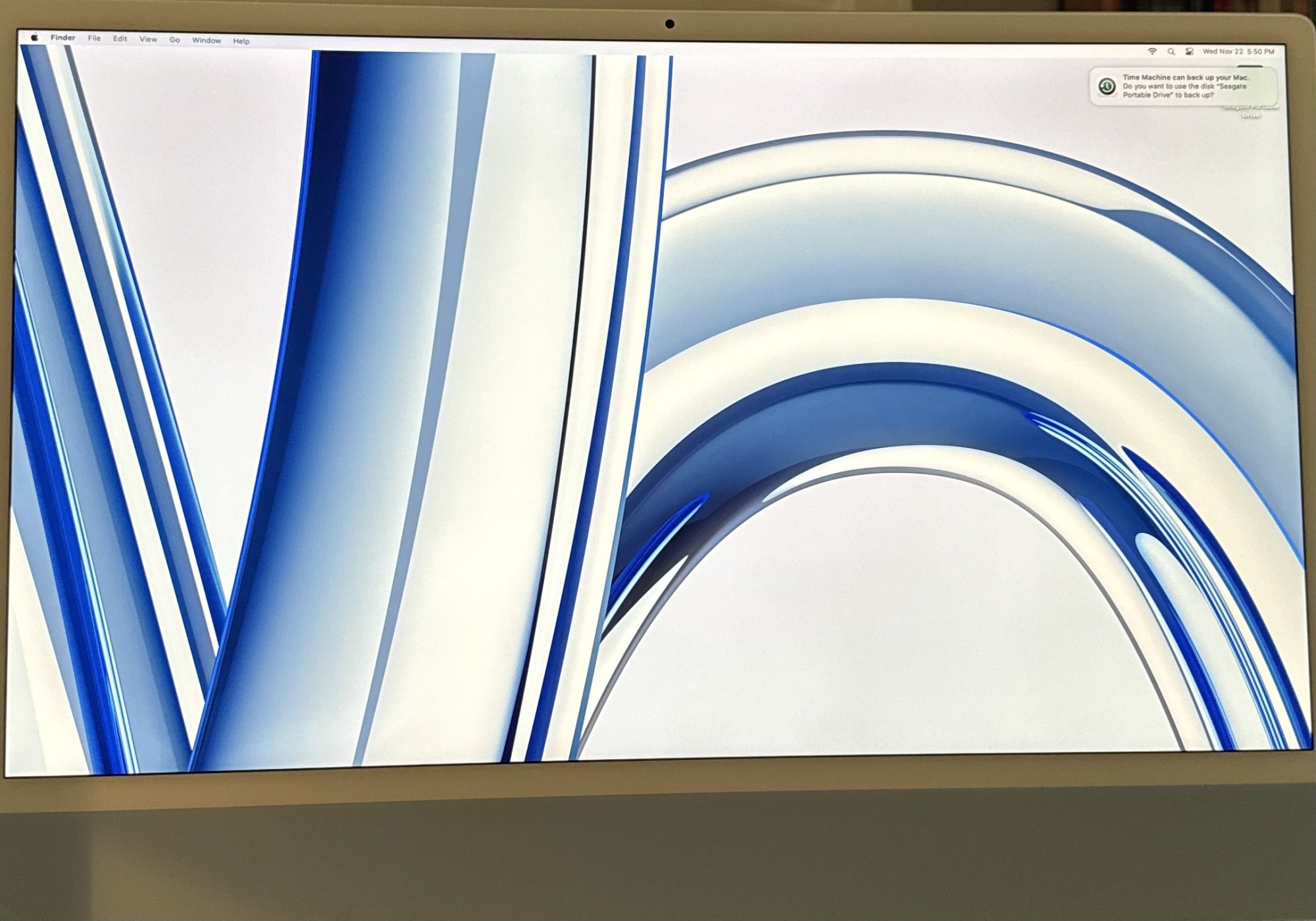 Just unboxed our new iMac and noticed some strange vertical lines on the setup screen. However, I am unable to see these lines in any other image. I tested solid colors and everything and cannot figure out where these came from.