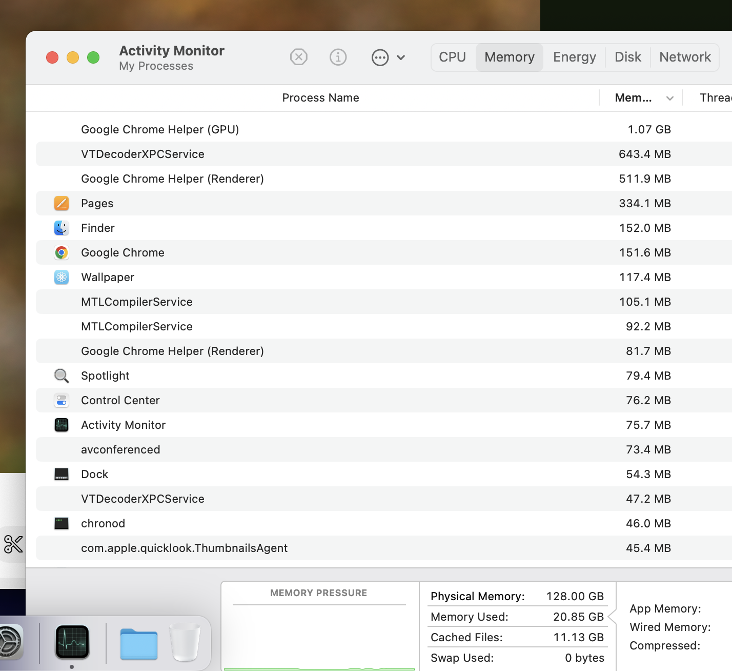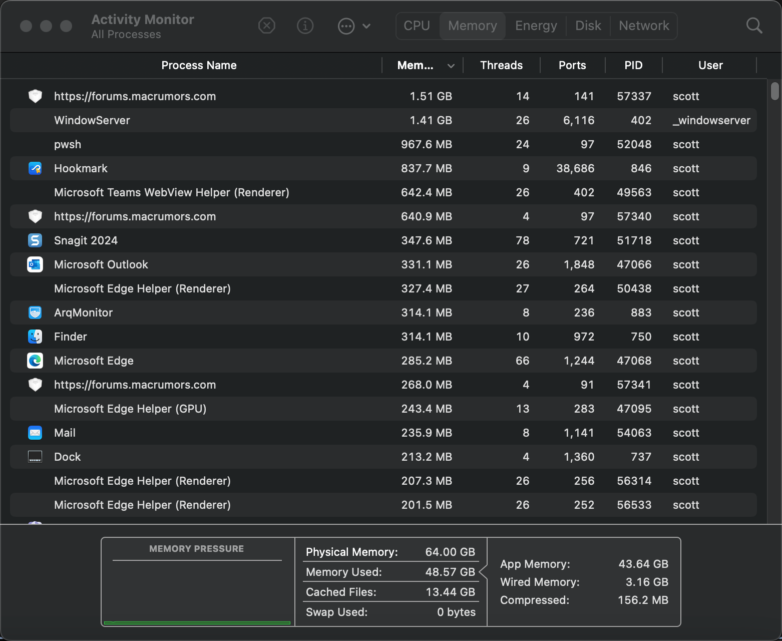 Now, going back to the M3 Max machine, if simply looking at memory used is incorrect because we expect to change as more apps are used, then what metric can I use besides the color coded memory pressure?