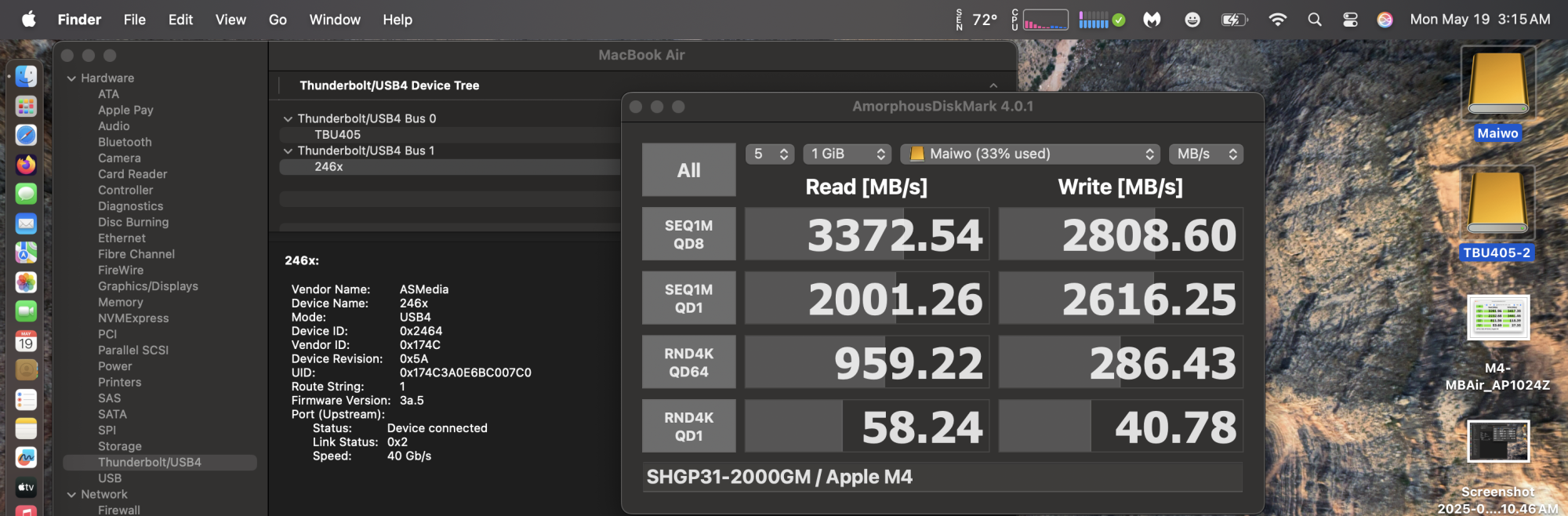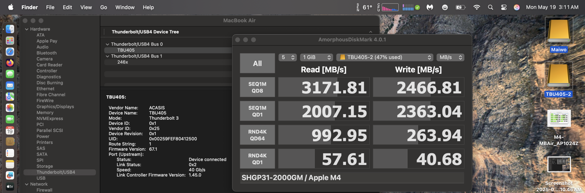 Rather surprised and disappointed to discover that if I connect two NVMe TB drives (two different Orico, also tried Envoy) into my M3 MBA, the second one to be plugged in gives:
