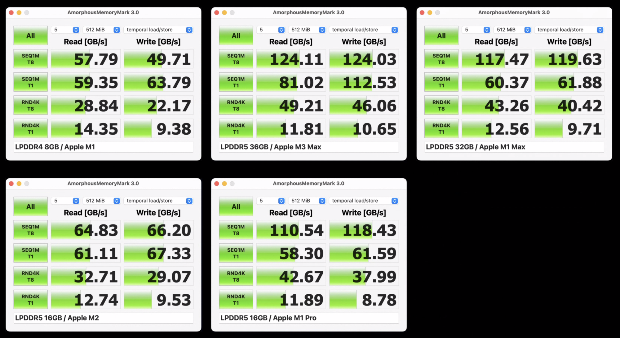 Has anyone seen benchmarks, either in an article or video, showing the difference between 8/16/24GB RAM on the new M3 Air?