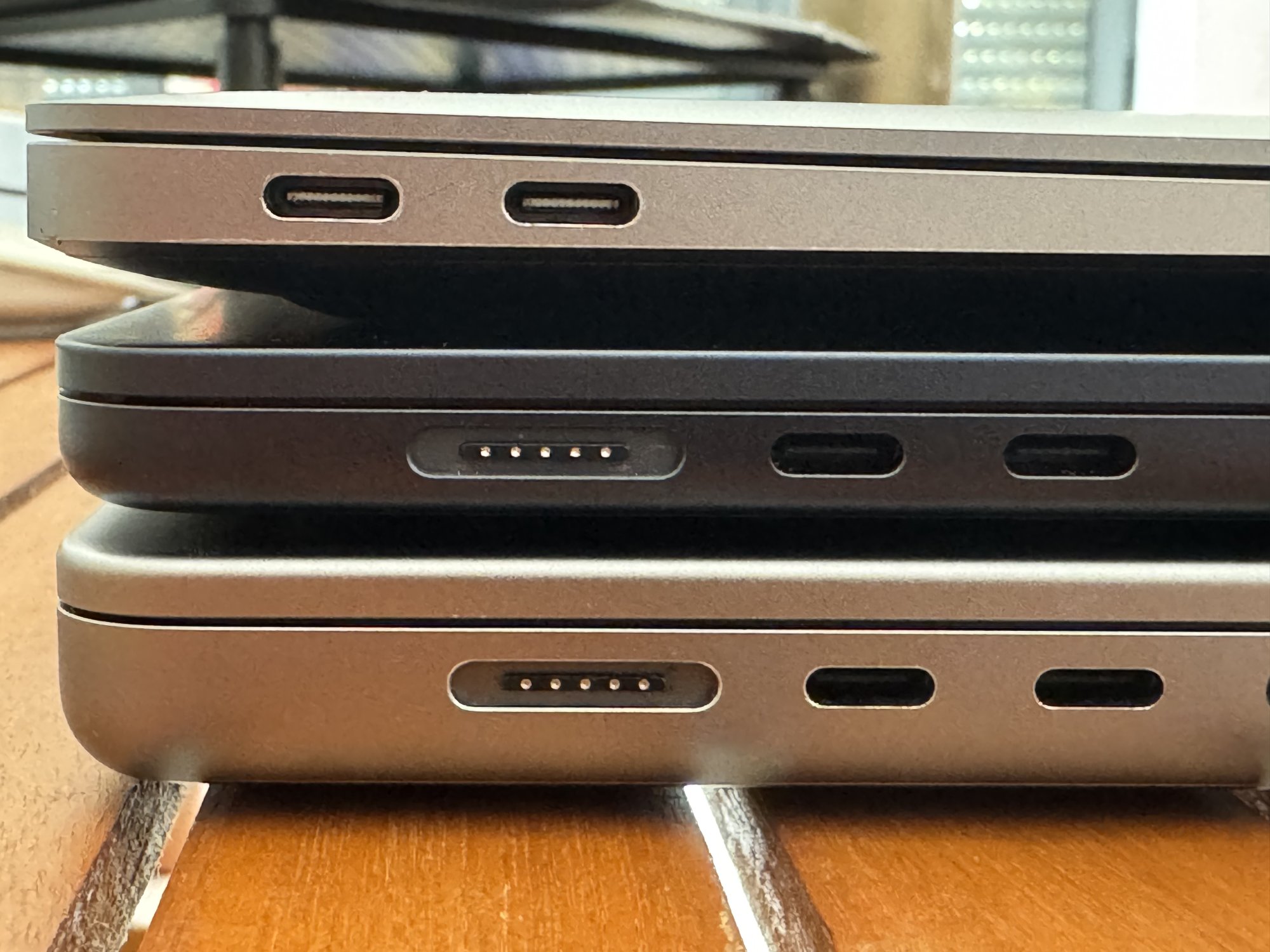 The experience has been so far fantastic. The processor temperatures are similar to M1 Pro, typically less than 40ºC, and even on the lap the computer is very comfortable. With the Pro it was not as pleasant mainly because of the weight. Here are some photos comparing a M1 2020 Air (previous version without the notch), the Air and the Pro.