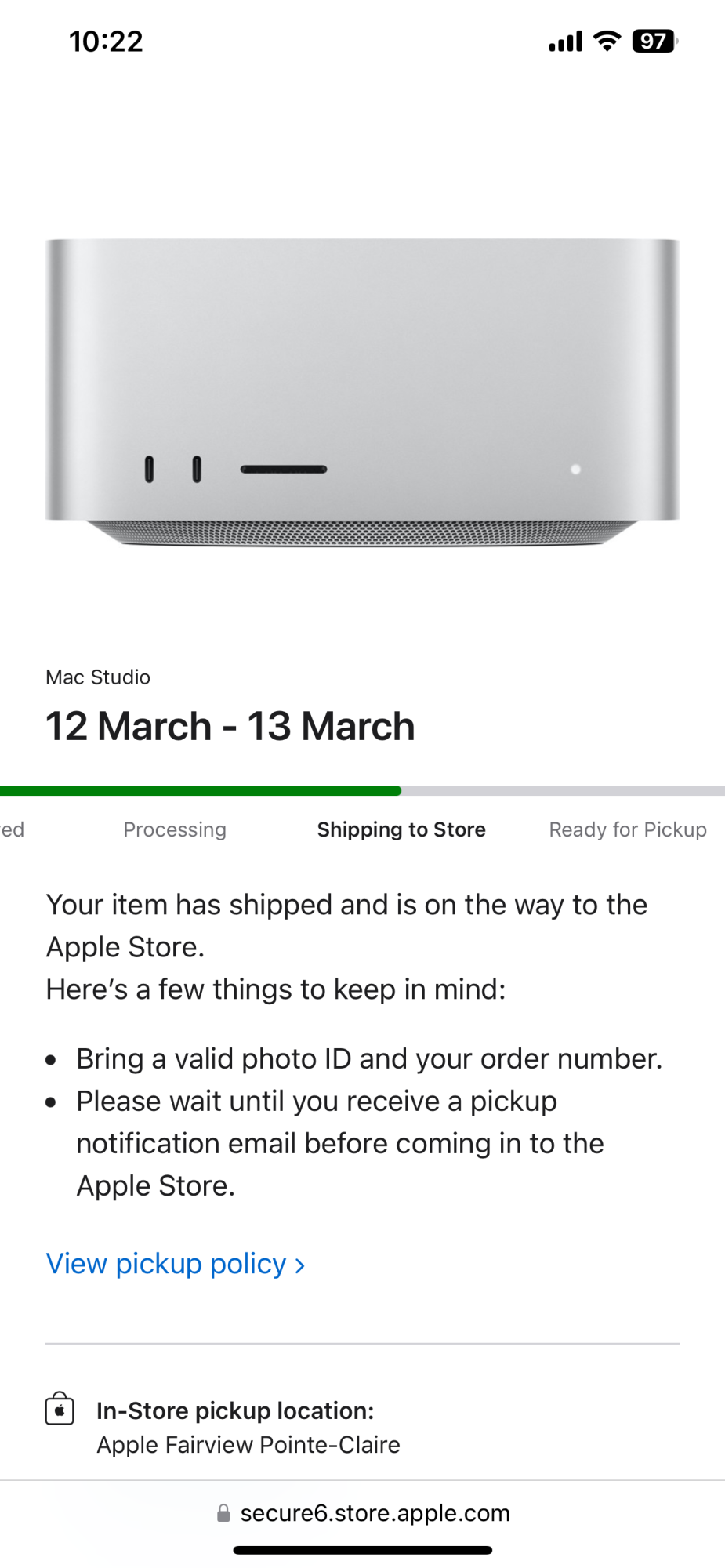 I now have a delivery window, and it should be here within the next two hours. Yay.