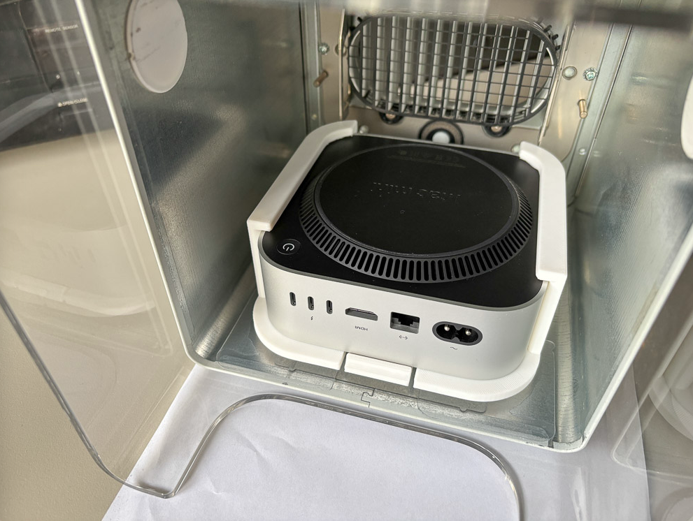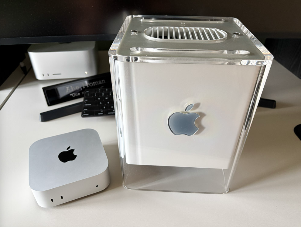 I recently bought a refurbished base model M4 Mini and fantastic as it is I do find the design a little dull. The PowerMac G4 Cube has always been one of my favourite designs so I hatched a little plan.