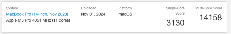 i'd call more than "a touch" for singleBase M4 seems to be a touch faster than a M3 Pro in both single and multi-core.