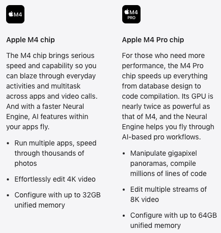 I can do a Mini Pro, 24GB Ram, 2Tb for $1619 vs a 32Gb RAM 2Tb for $1839. So, less RAM, significantly more cores of CPU/GPU and save $200, or more RAM, but less chip and pay $200 more?