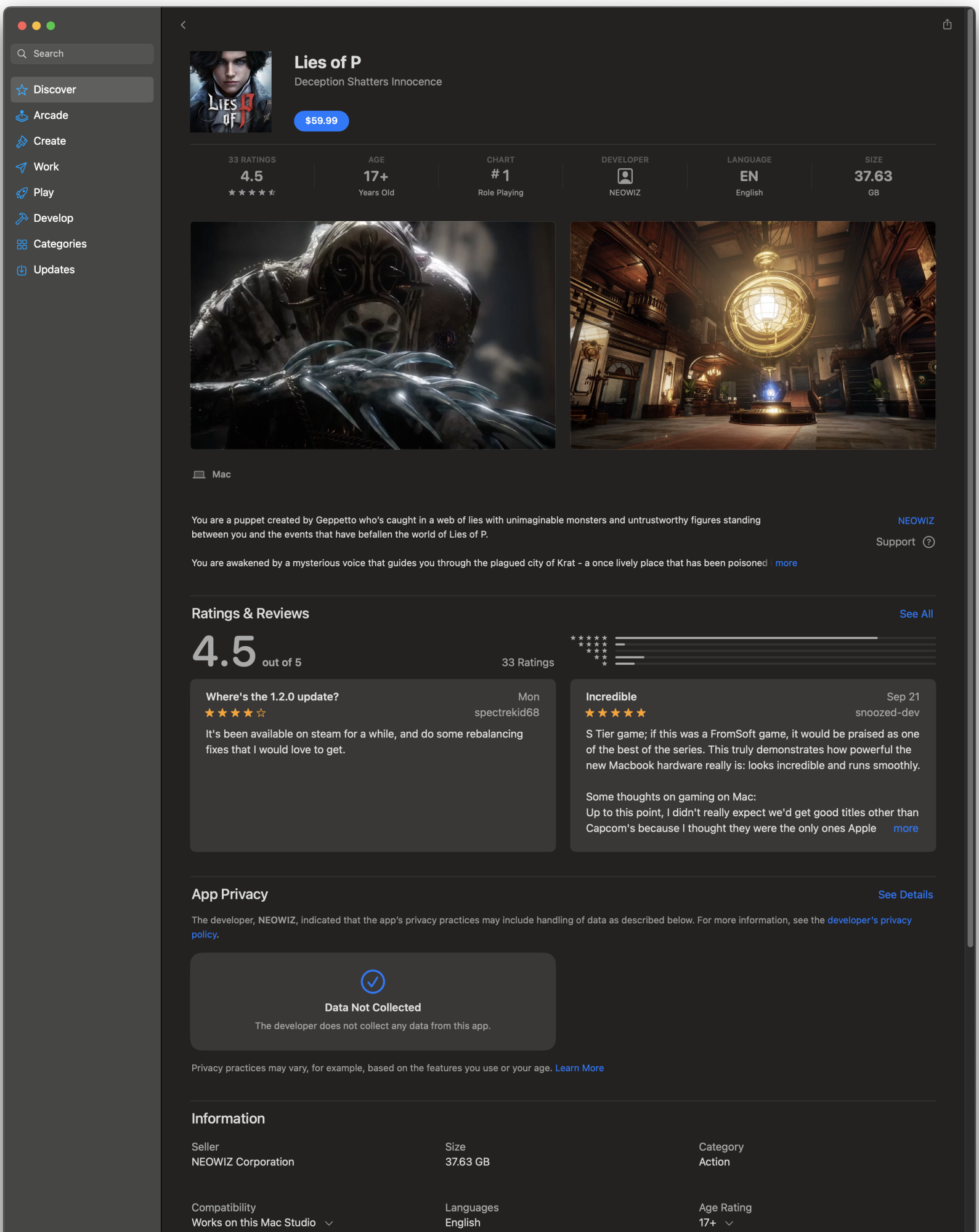 I noticed that there are some games on the Mac App Store now that you can't buy elsewhere. I saw Lies of P on there, and the good reviews. So I went to steam to see if I could buy it there to add to my library, but it's not available there for Mac. lol.