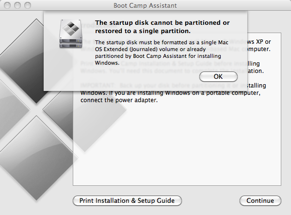 I have Mac OSX snow leopard and i did a partitioning using boot camp to install windows xp sp2 pro, everything worked very well until i decided to remove the partitioning. However, i did a mistake by formatting windows xp partition and used it as Time machine back up. Now i can't remove time machine back up and join it with the original Mac OSx HDD. This is the message i get when i try to join the partitioning back again using boot camp ( you can see it in the image that I've attached).