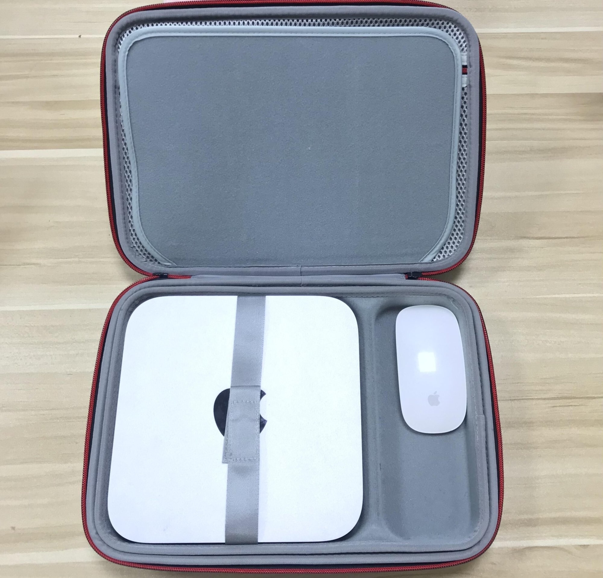 I just bought a mac mini 2 last month. I needed something to keep my Mac mini safe while I travel back and forth between locations. I thought buying holder or mount could hold it but i still have other needs like i wanna put some accessories together with. After comparing with so many kinds of holders and cases. I finally bought this one to try. I'm just need a case to hold things. But to my surprise, it's Exactly Fit For Mac Mini and apple keyboard (small version) . I transport it from home to office on a daily basis and it fits snug and safe. I put extra cables and mouse, that all fit safely inside the case. I can also fit my iPad in the mesh pocket.