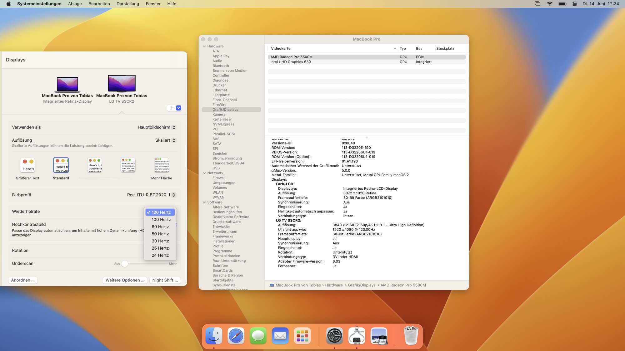 I've tried it on a 2017 macbook pro 15 with rx560 and still no option to go over 60hz. So sad. Do you have any special settings please?Yes, of course. I attached screenshots of Systemsettings & Systemprofiler for the CableMatters (120Hz Limit) & the Apple 2119 Adapter (60Hz Limit). Also the VRR menu on the LG CX with the CableMatters adapter. You can see that it uses HDMI 2.1 FRL signaling (4L6 with 4 lanes) instead of the 2.0 and earlier TMDS signaling with 3 lanes. Unfortunately it’s a fixed framerate and not variable (VRR) and my CableMatters adapter outputs only stereo and not 8 channels or more.