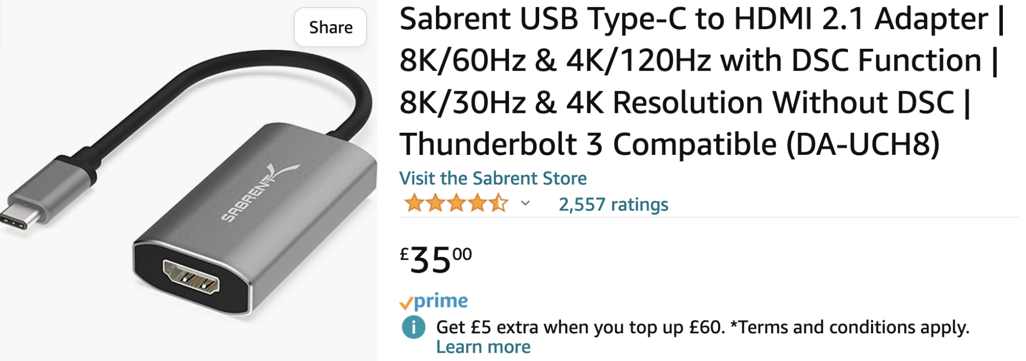 Cable : DP 1.4 -> HDMI 2.1.(Plenty of adapter cables out there now. pick a good one).