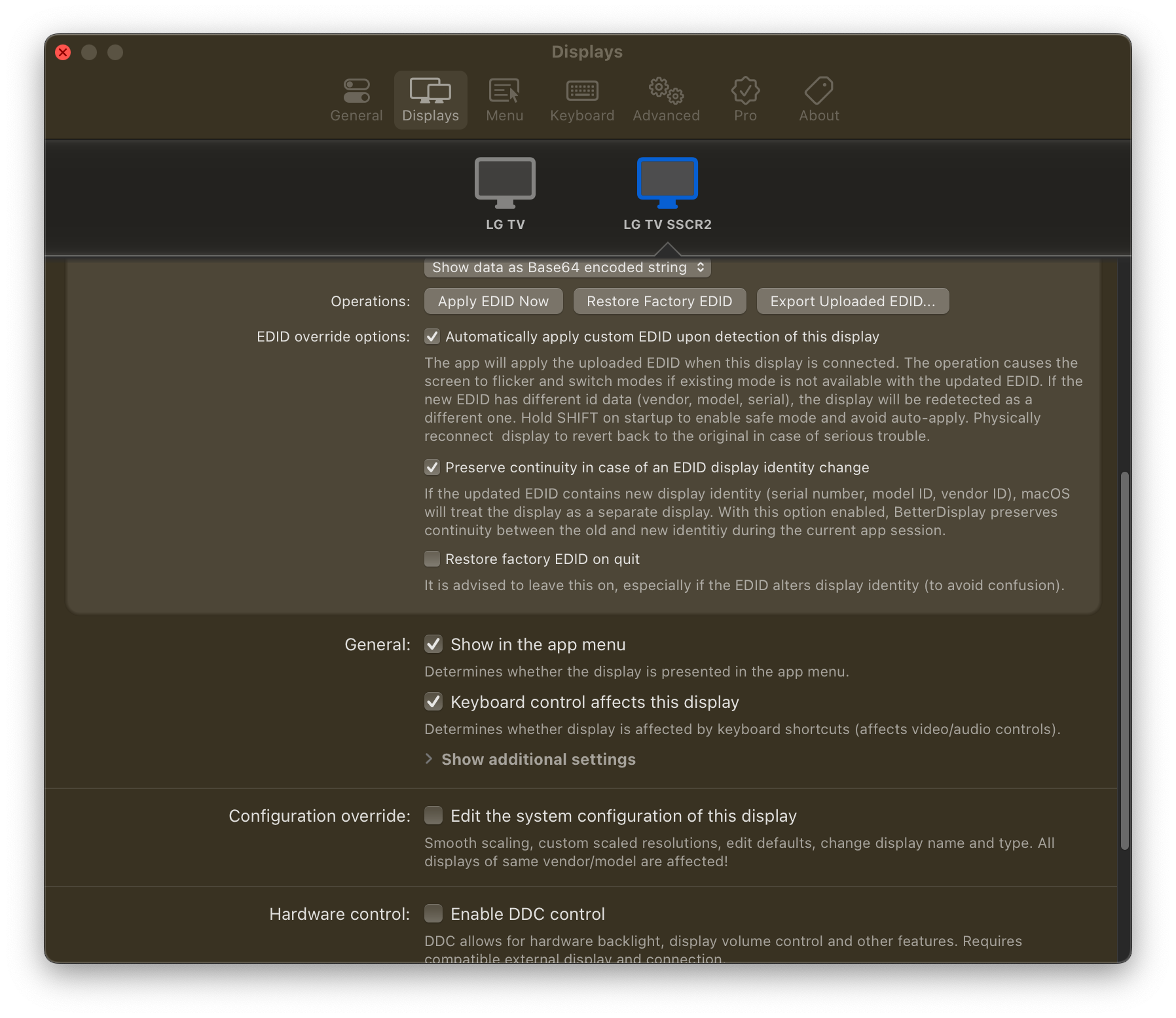 In Better Displays I can only set resolution with 120Hz to 2560x1440, there is no alternative for 3840 at 120hz..