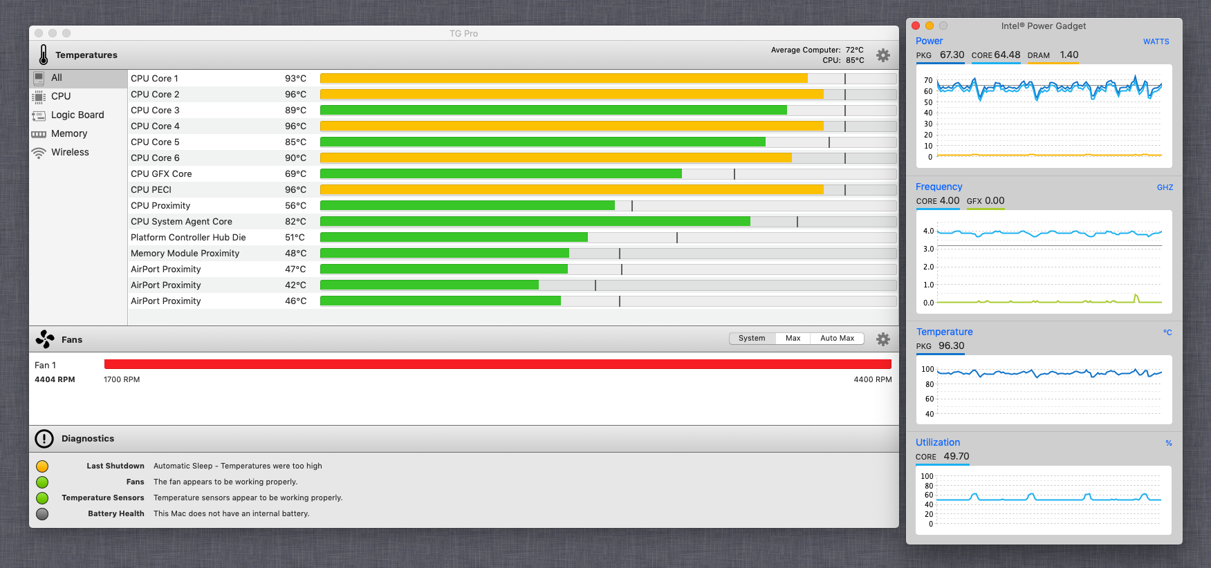 If anyone is interested in seeing the maximum heat, cpu speed (MHz), and Fan noise that you will
